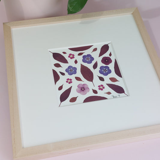 Ces œuvres d'art floral mural sont de véritables tableaux végétaux, minutieusement composés de fleurs naturelles pressées et séchées dans mon atelier.