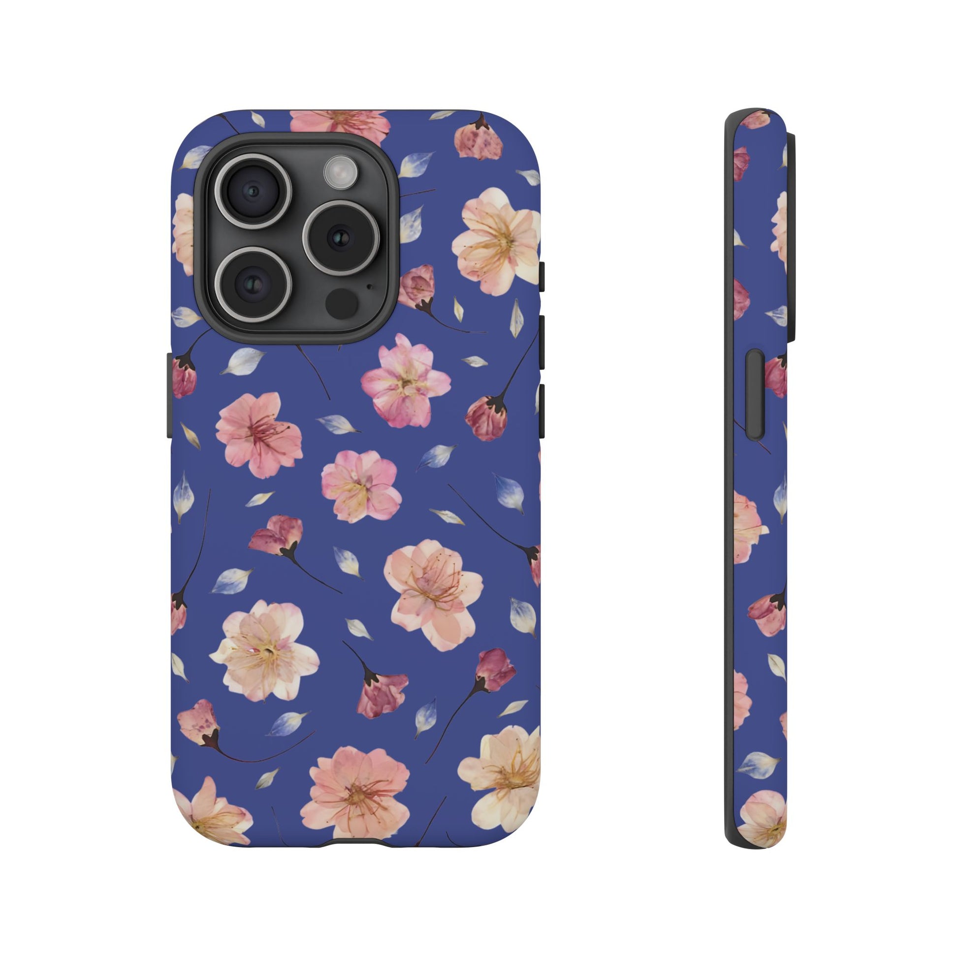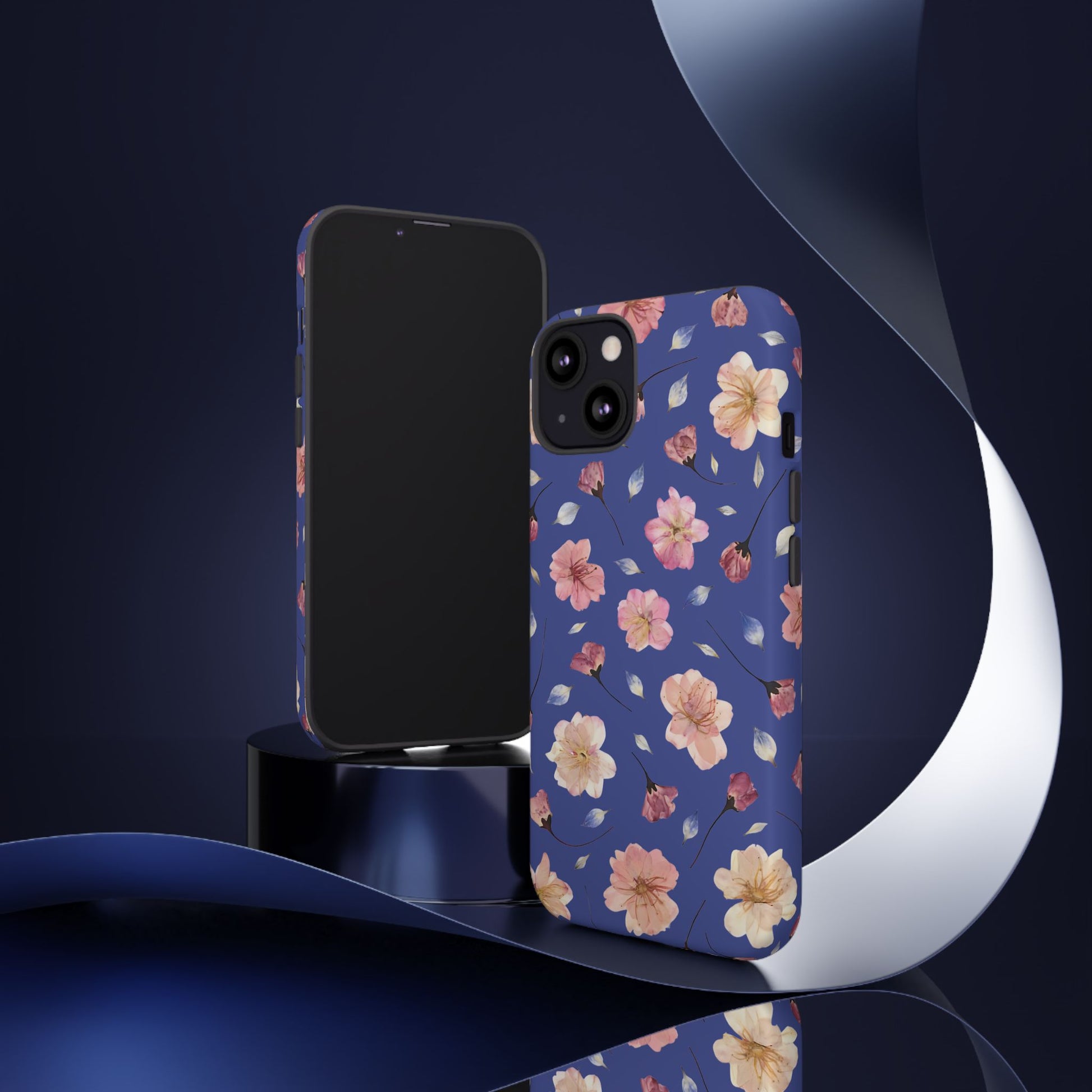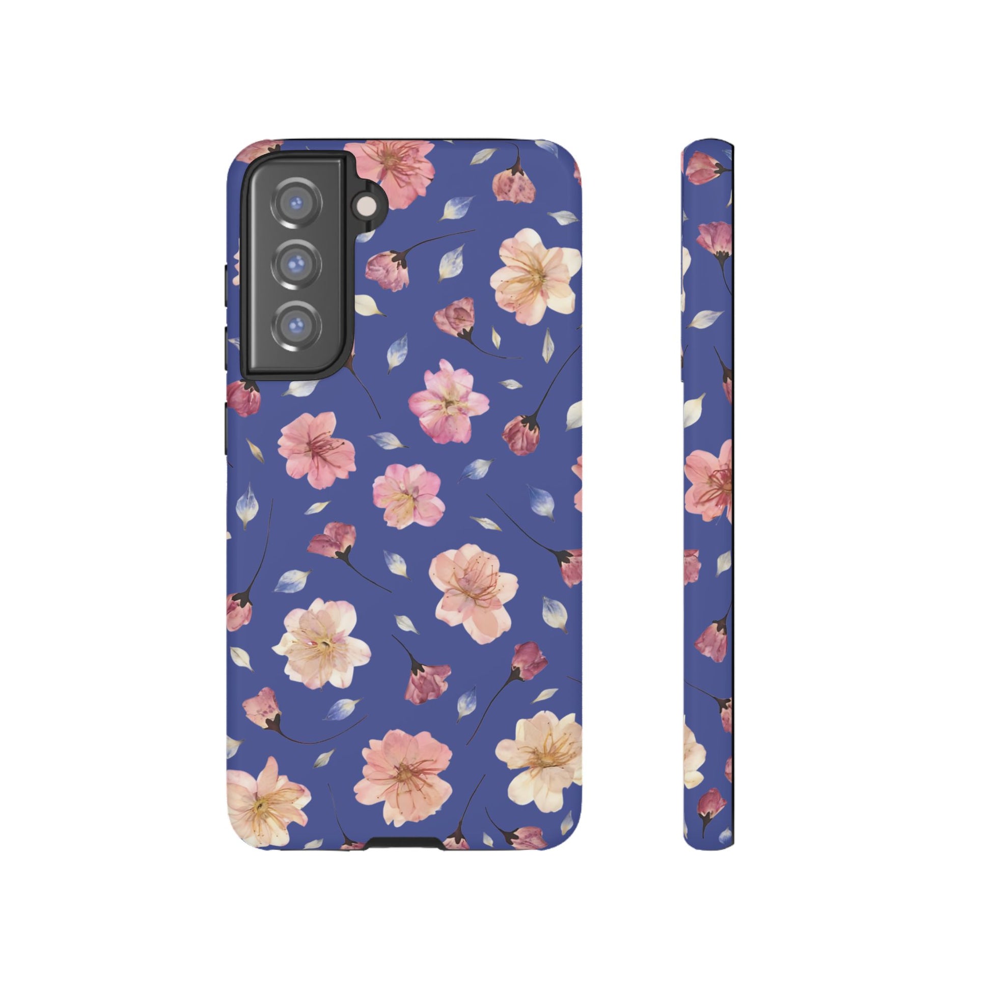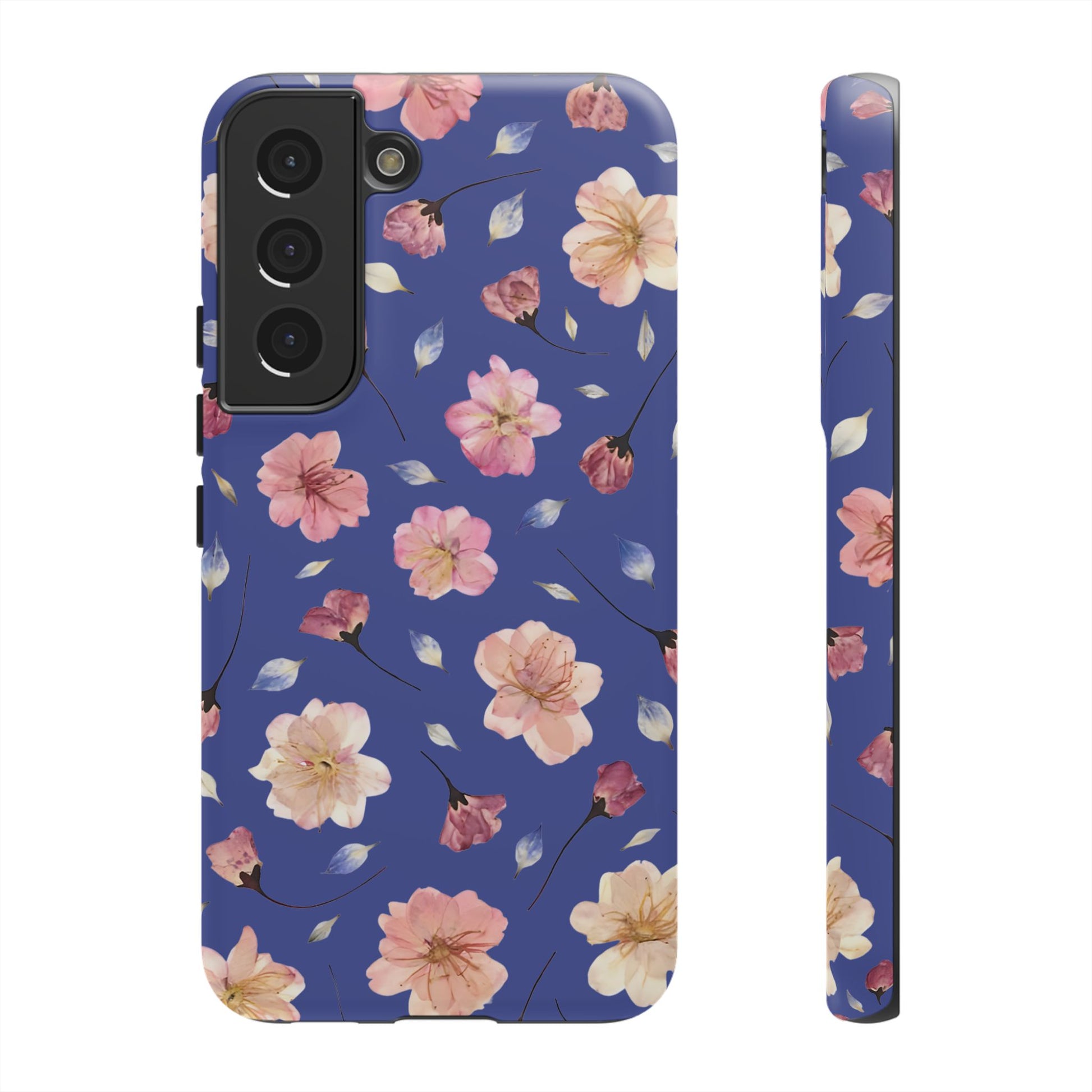 Coque Téléphone Samsung, iPhone & Google Pixel Renforcée Mate – Design Floral Fleurs de Cerisier sur Fond Bleu Encre | Protection Antichoc | Idée Cadeau Pour Elle