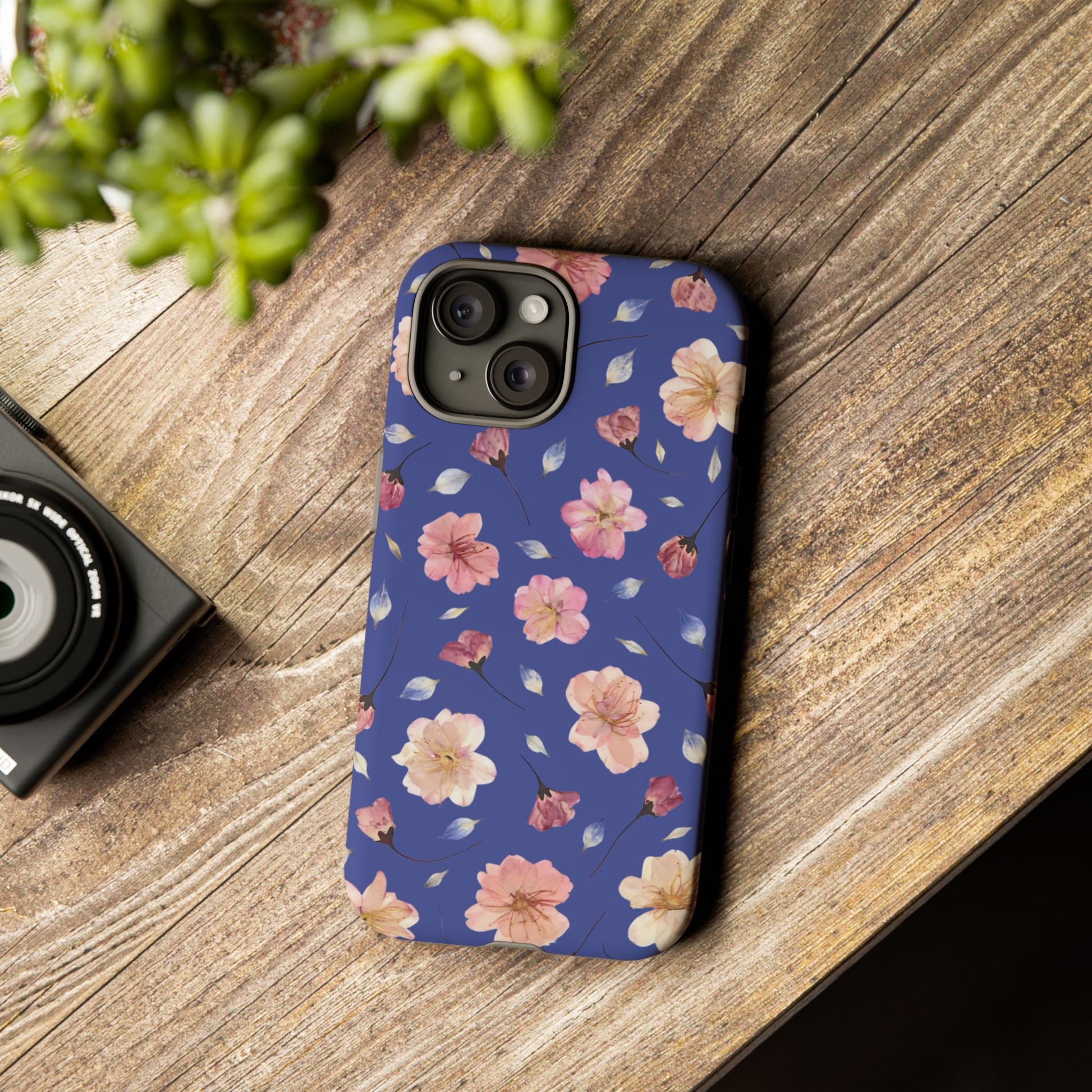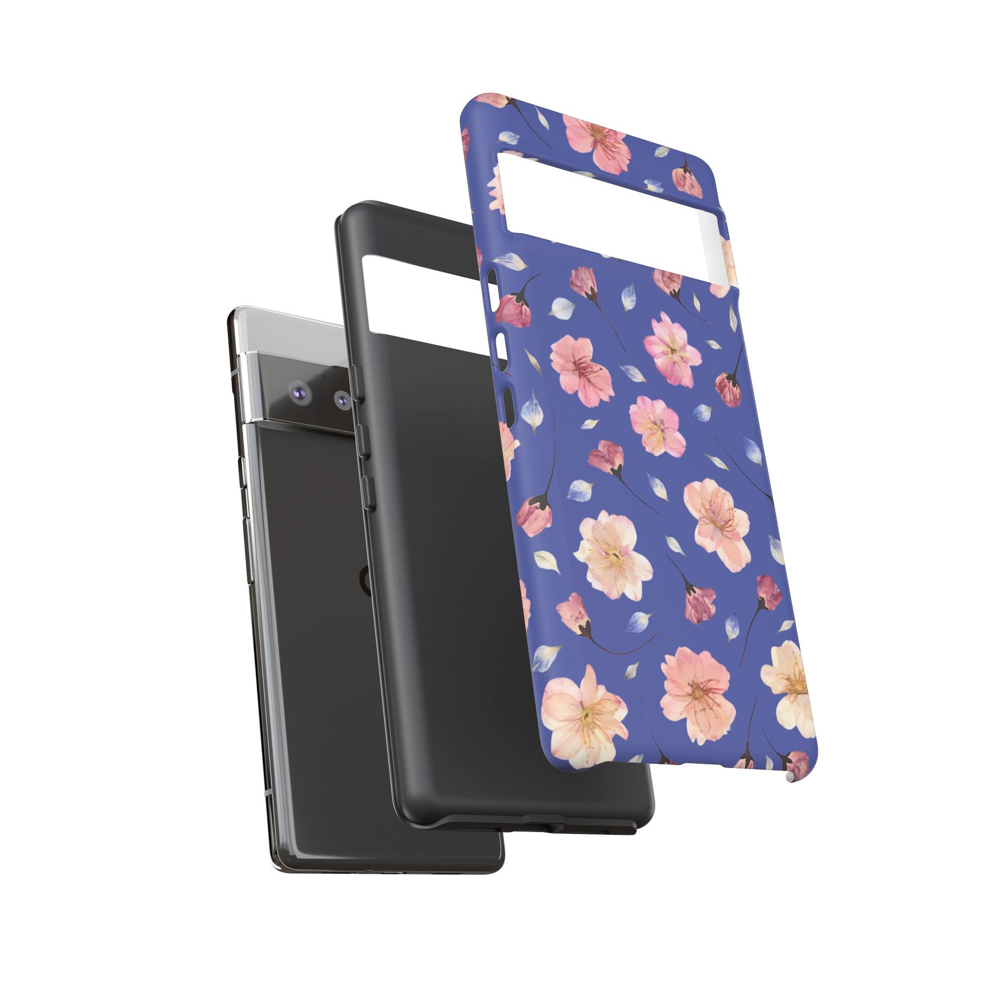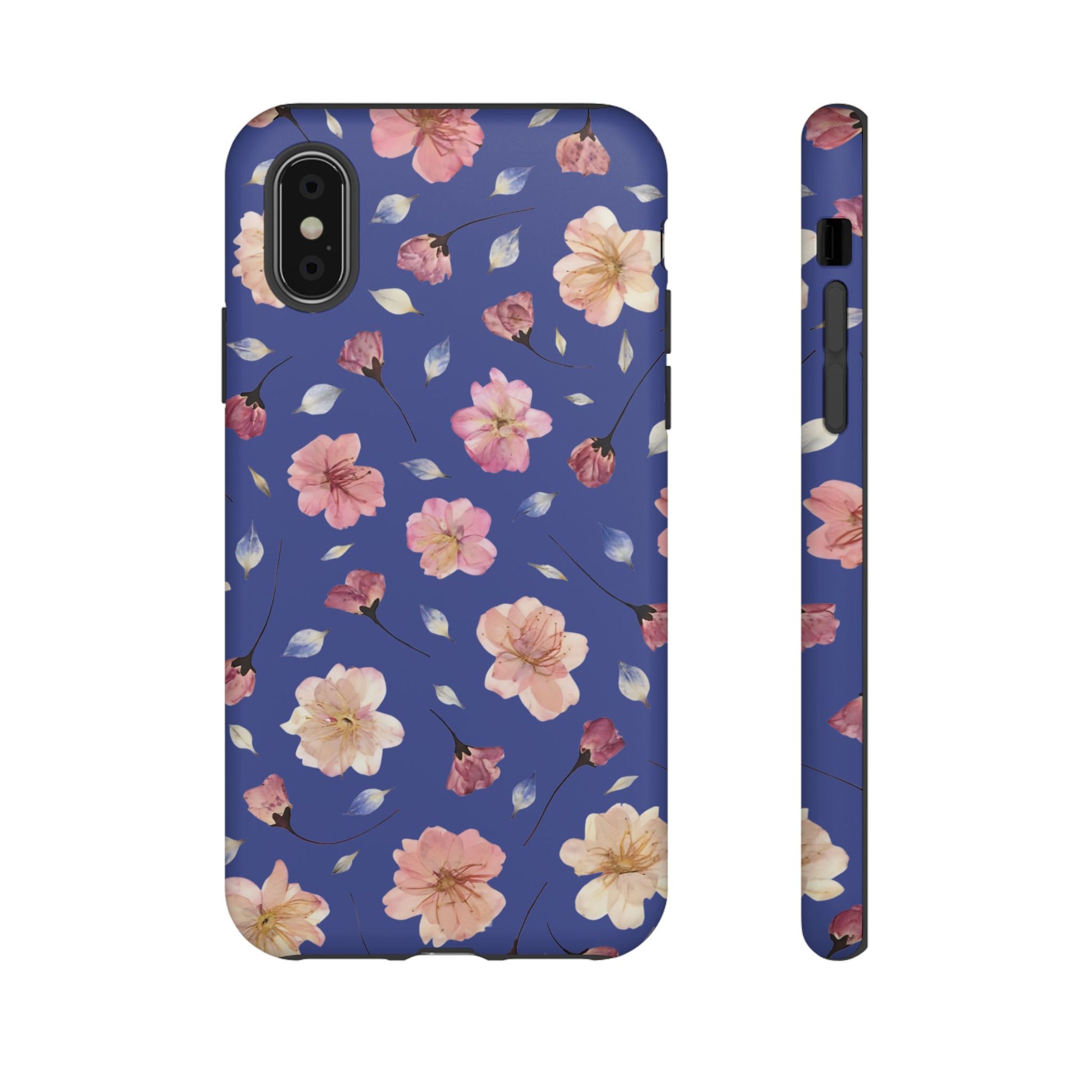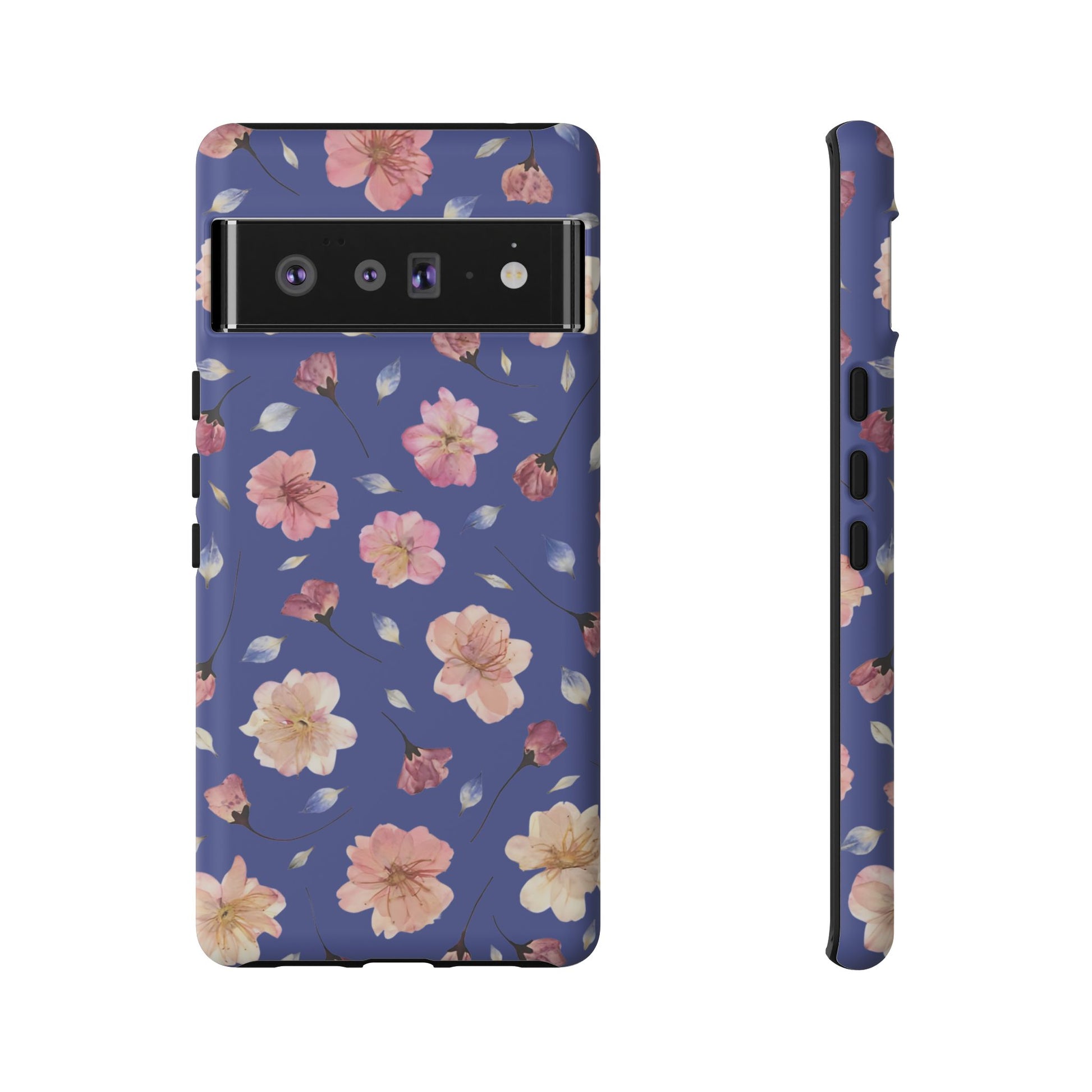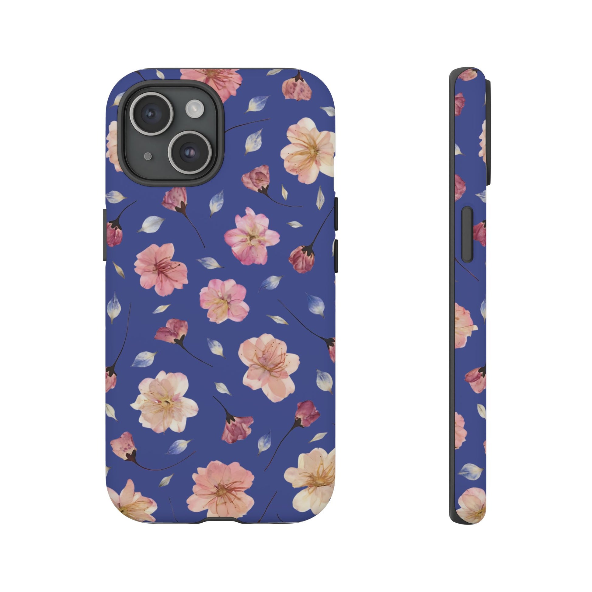 Coque Téléphone Samsung, iPhone & Google Pixel Renforcée Mate – Design Floral Fleurs de Cerisier sur Fond Bleu Encre | Protection Antichoc | Idée Cadeau Pour Elle
