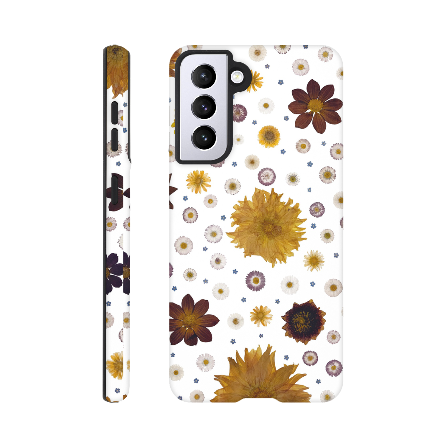 Son design floral original Flori F. fait avec des fleurs de dahlia, marguerites anglaises et myosotis ajoute la beauté de la nature à votre coque de téléphone, en faisant un indispensable pour les amoureux des fleurs et convient parfaitement à ceux qui souhaitent allier fonctionnalité et attrait esthétique.