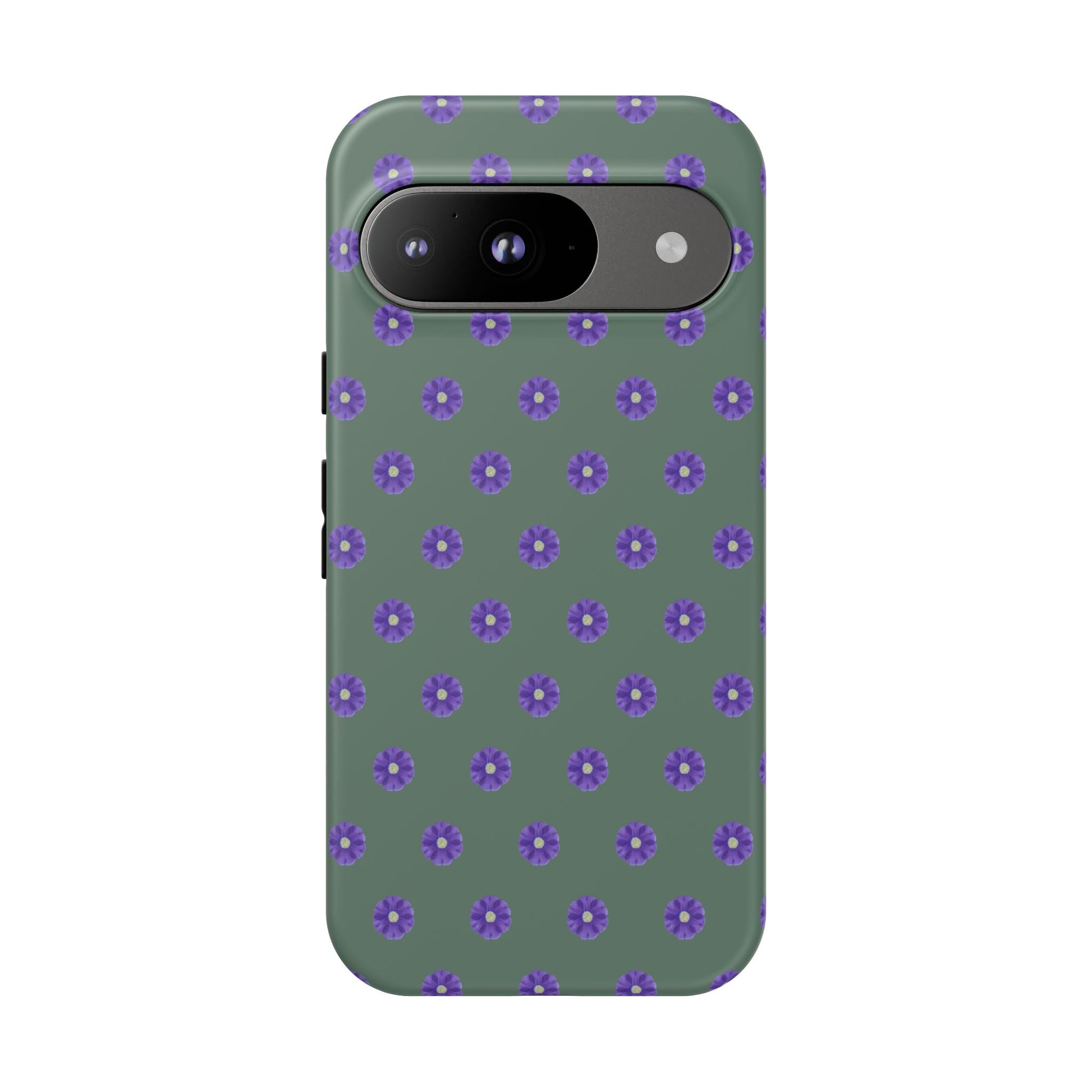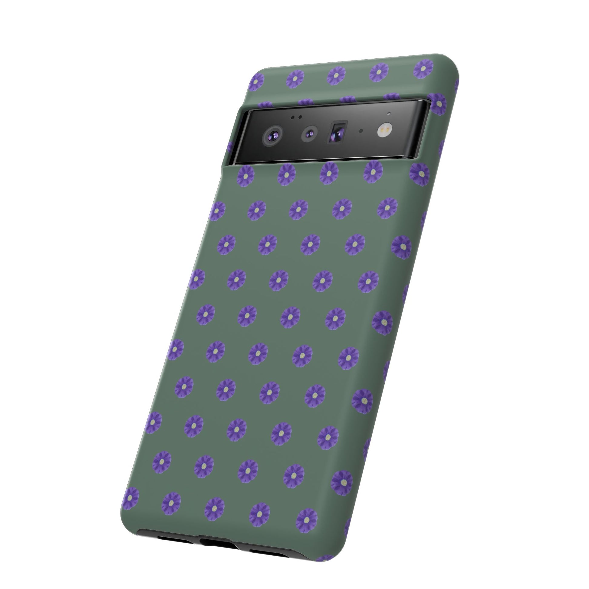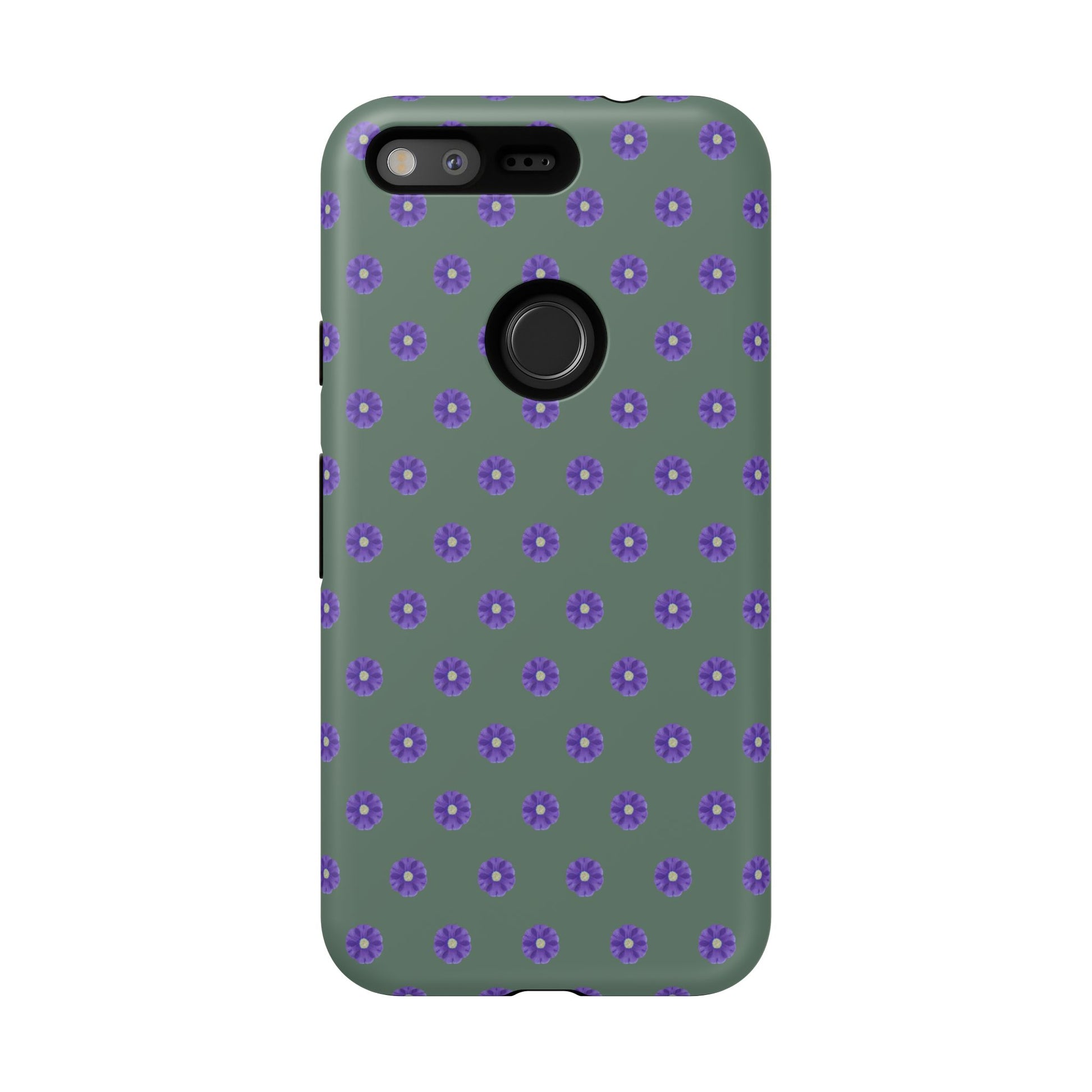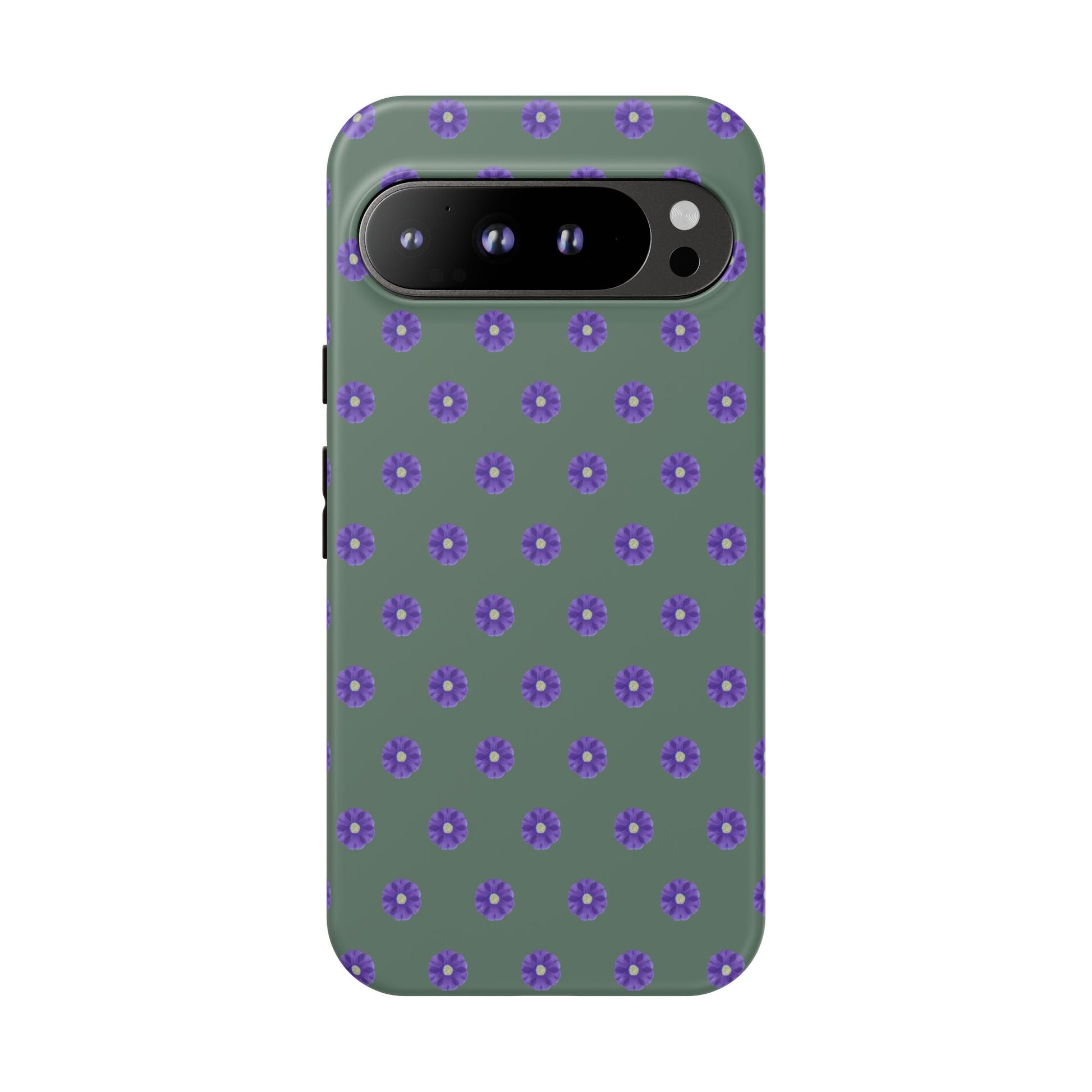 Coque Téléphone Samsung, iPhone & Google Pixel Renforcée Mate – Design Floral Epuré Fleurs de Primevère sur Fond Vert Minéral | Protection Antichoc | Idée Cadeau Femme