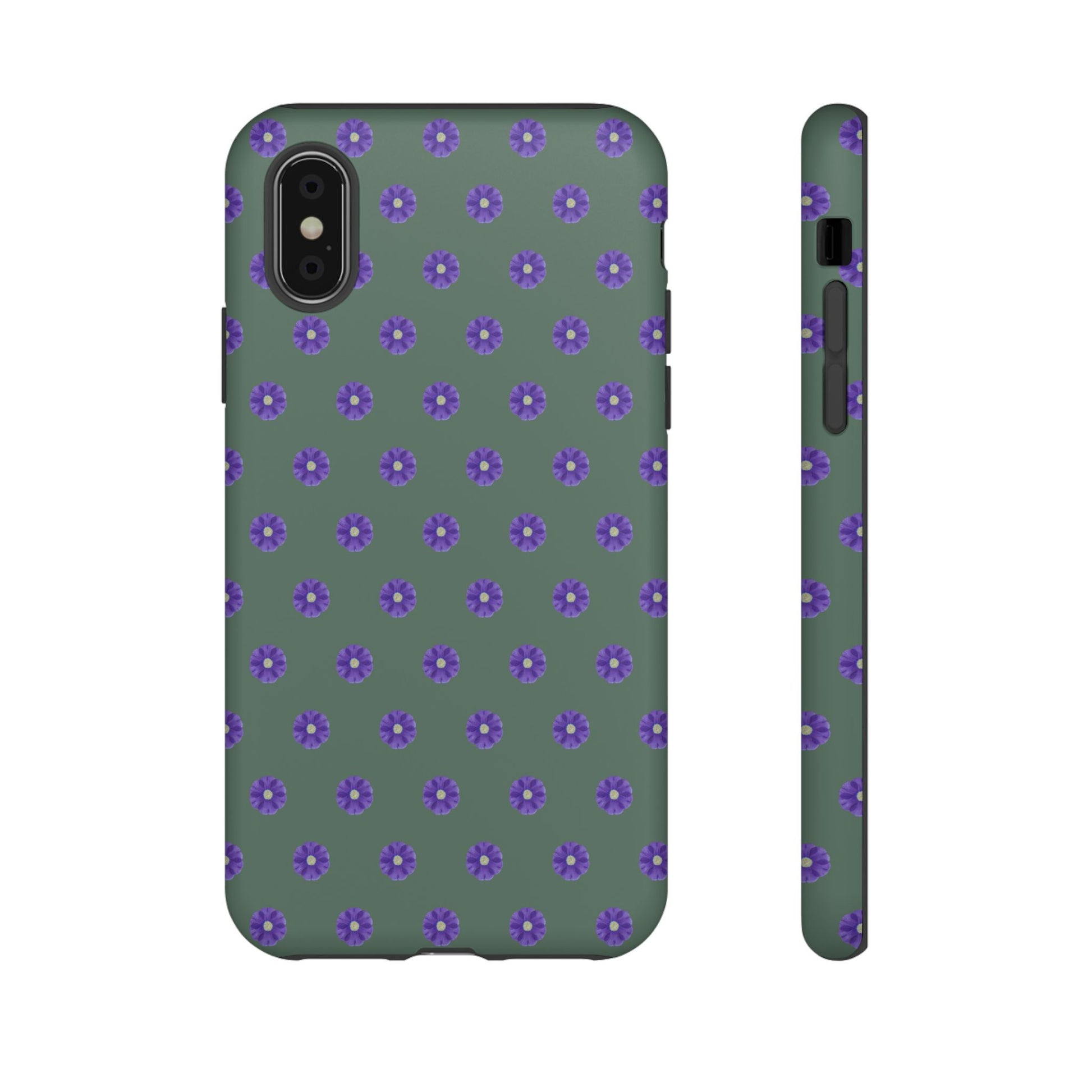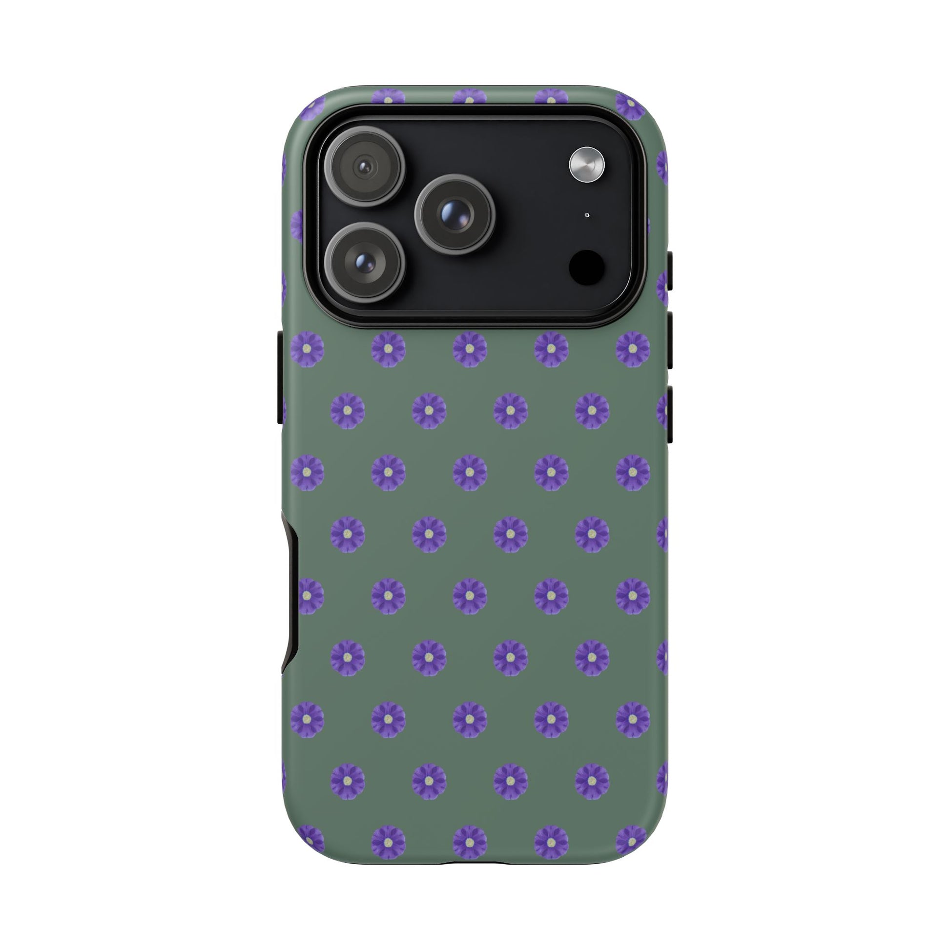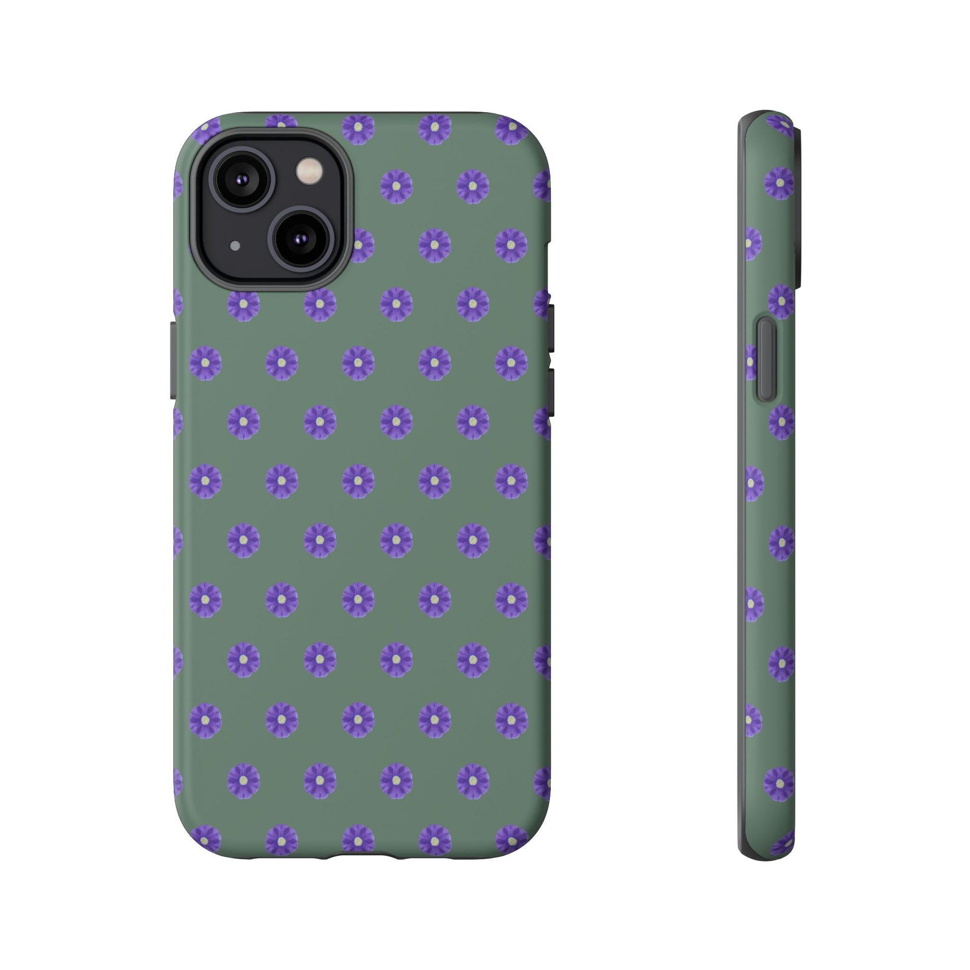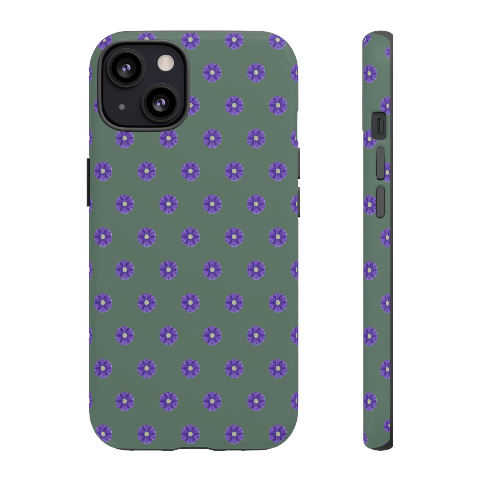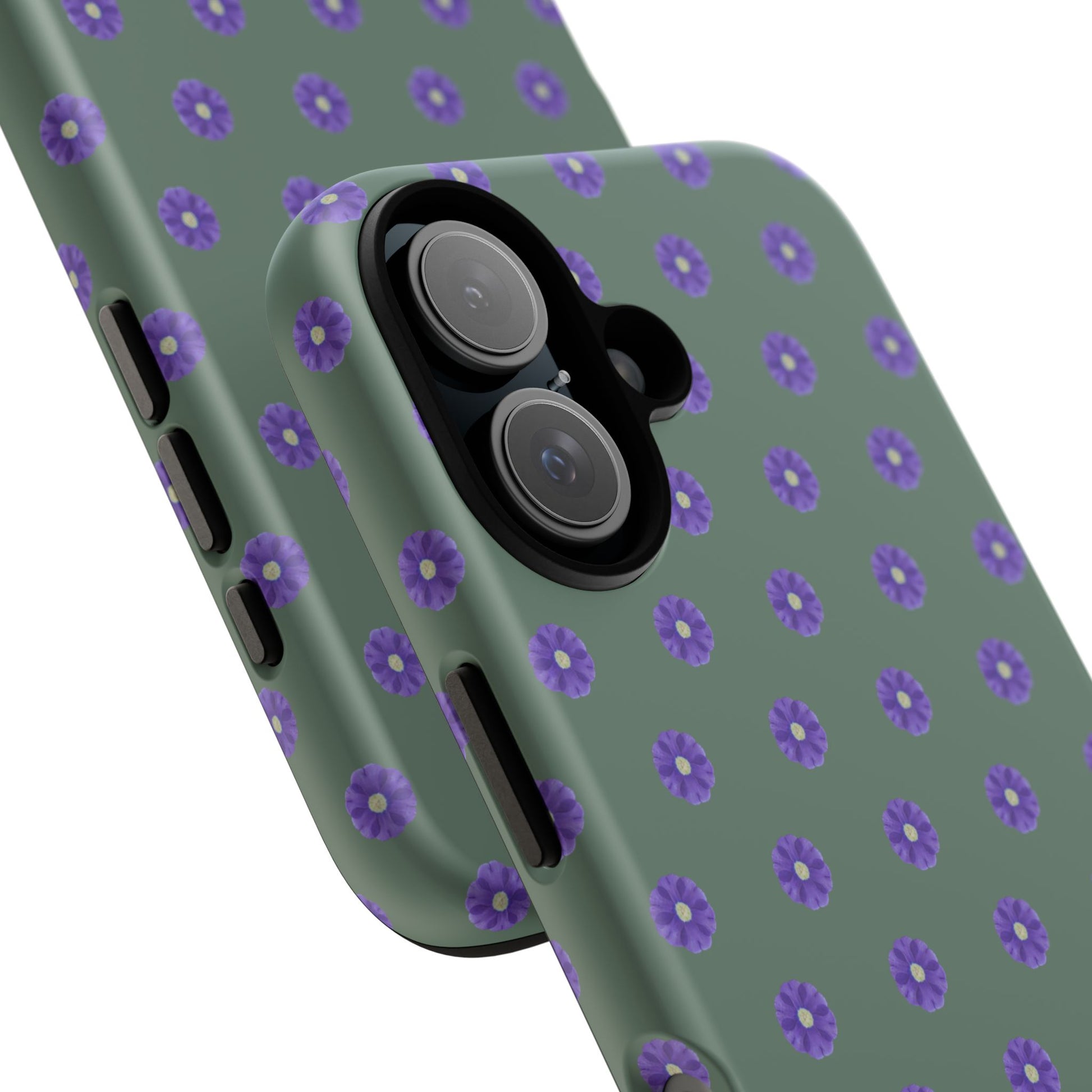 Coque Téléphone Samsung, iPhone & Google Pixel Renforcée Mate – Design Floral Epuré Fleurs de Primevère sur Fond Vert Minéral | Protection Antichoc | Idée Cadeau Femme