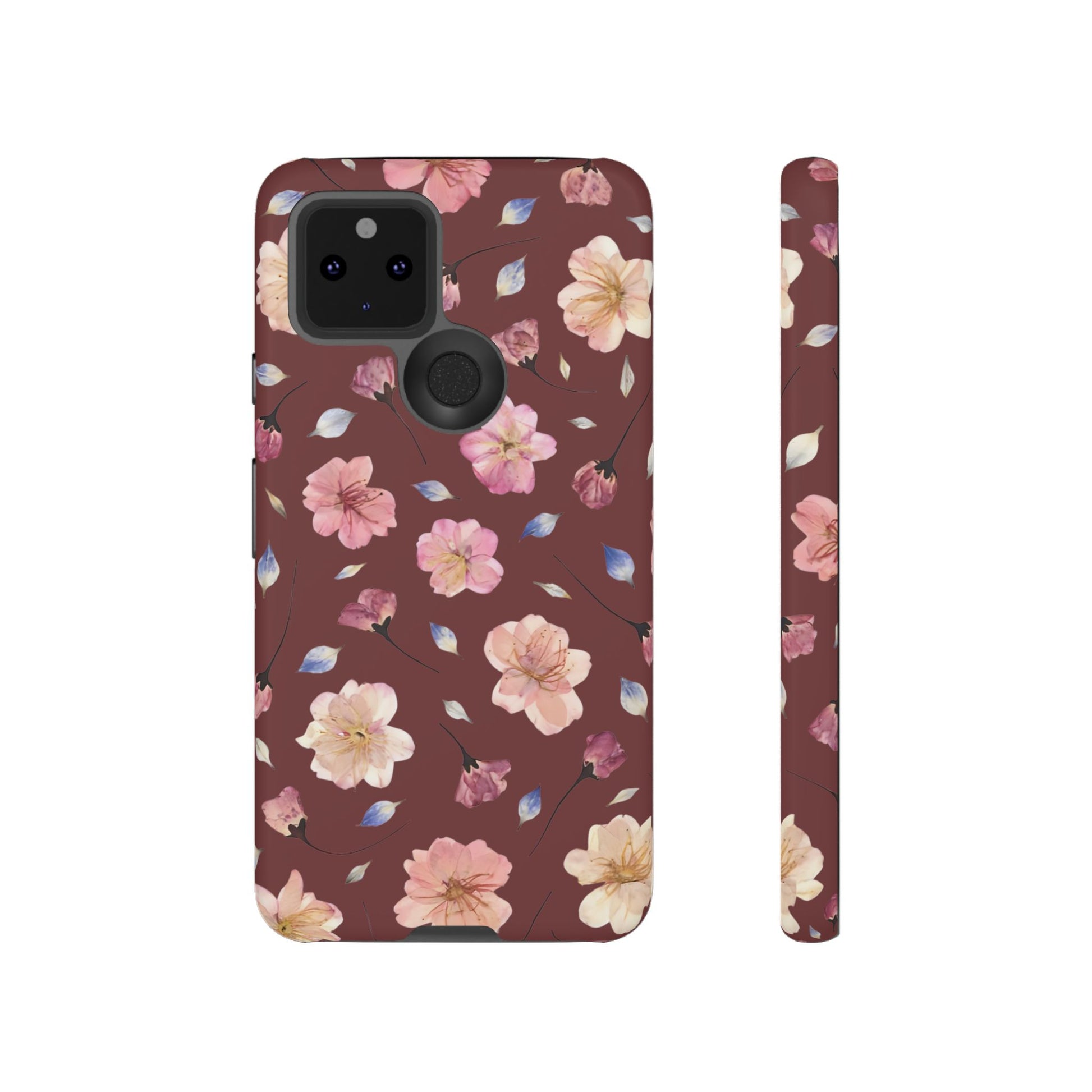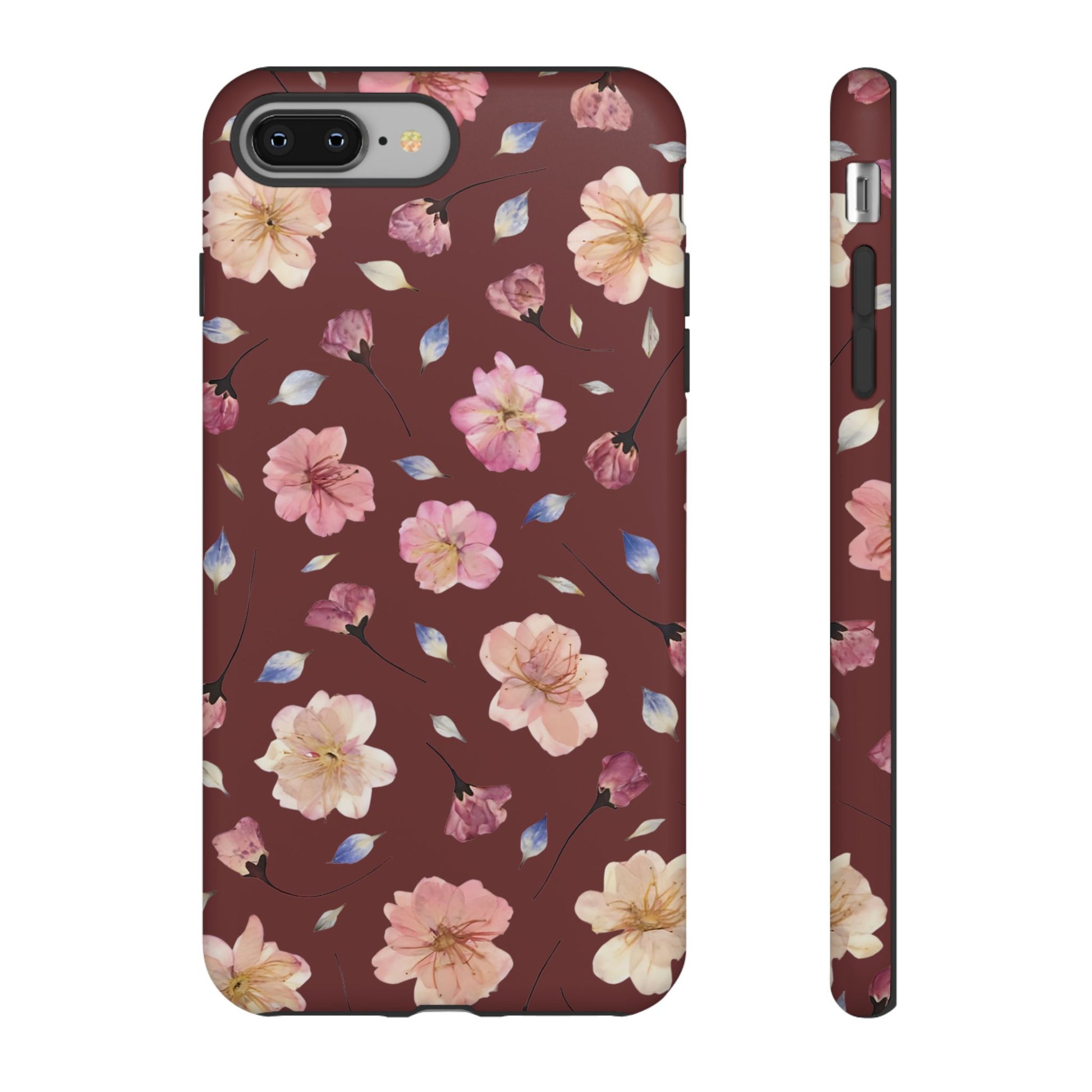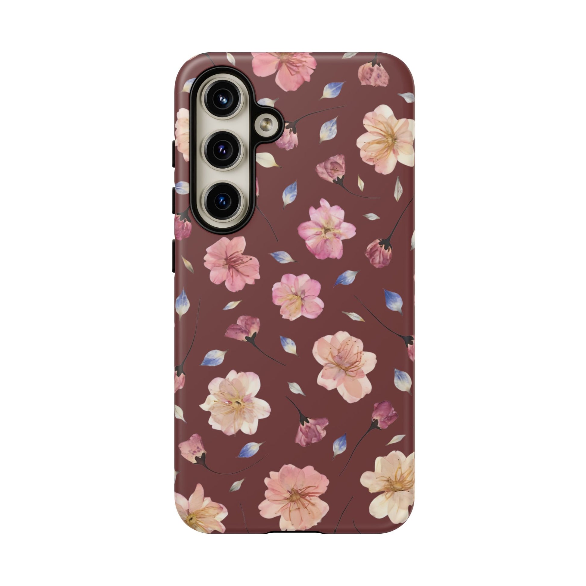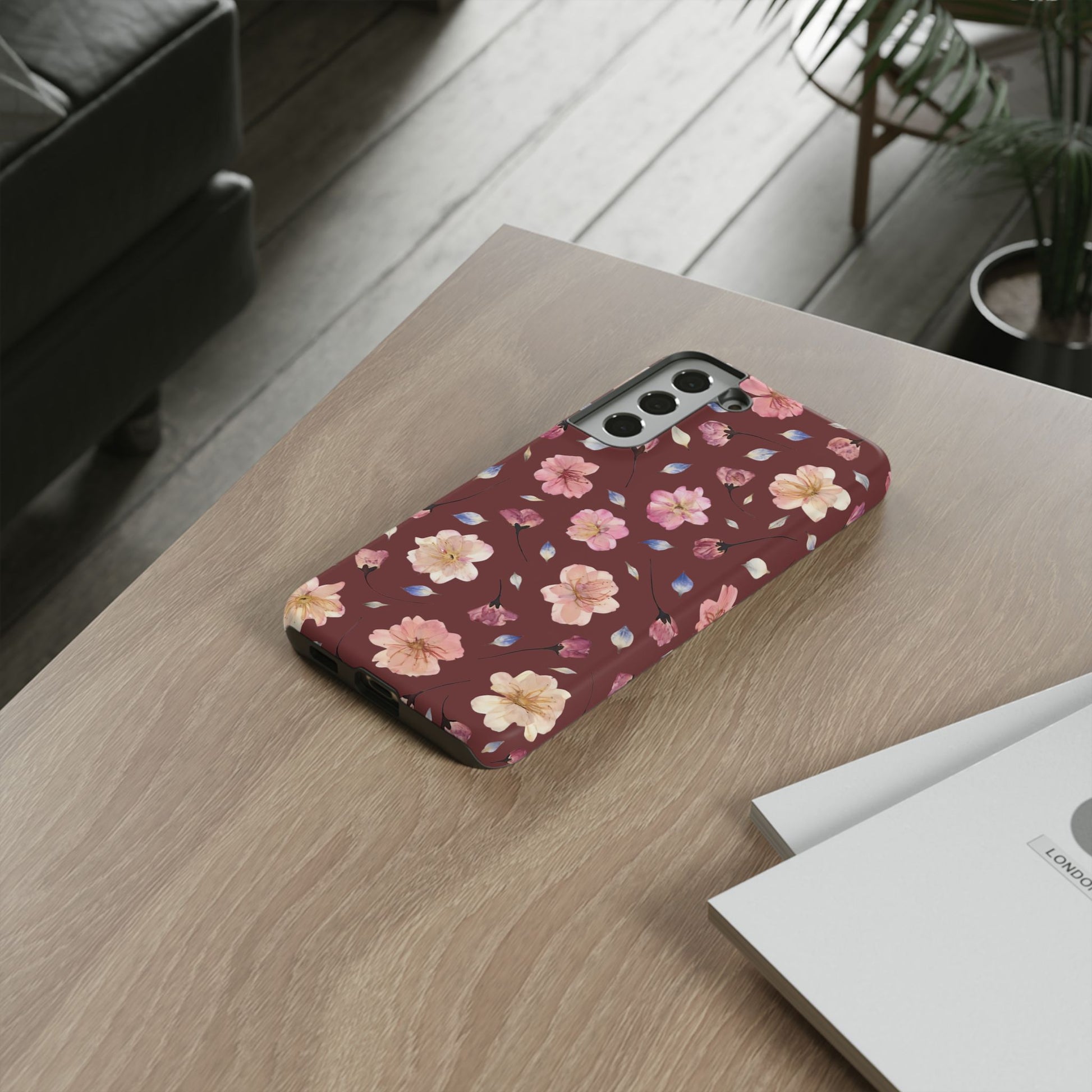 Coque Téléphone Samsung, iPhone & Google Pixel Renforcée Mate – Design Floral Fleurs de Cerisier sur Fond Bordeaux | Protection Antichoc | Idée Cadeau Pour Elle