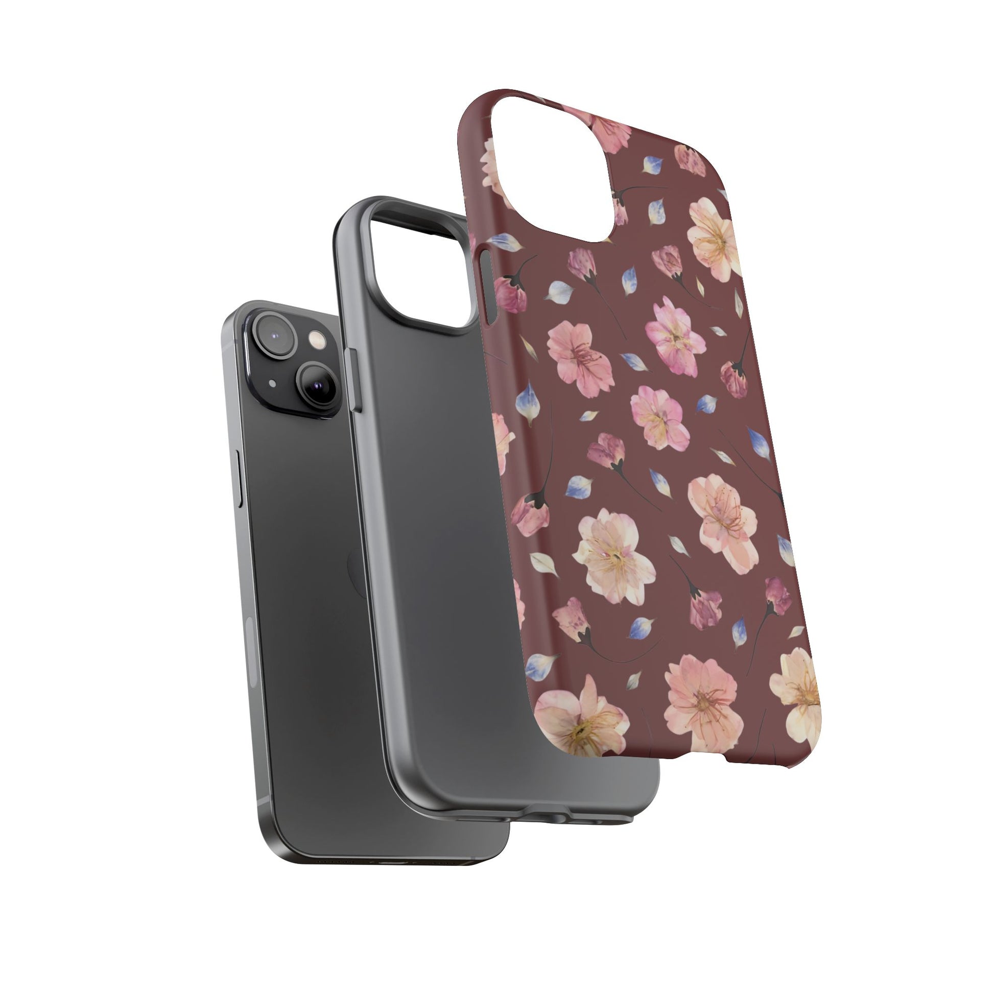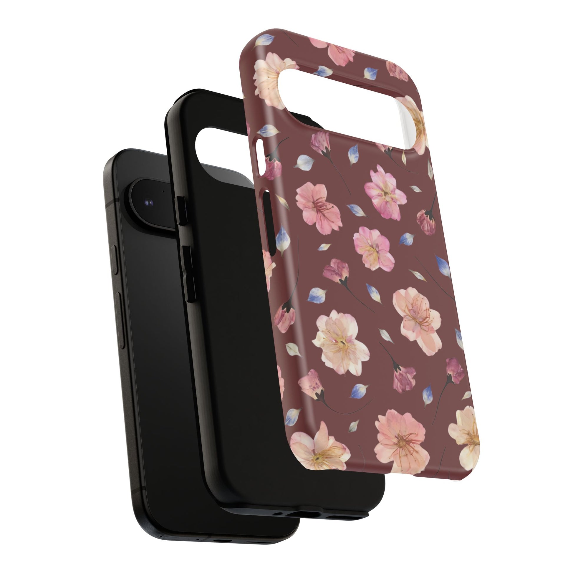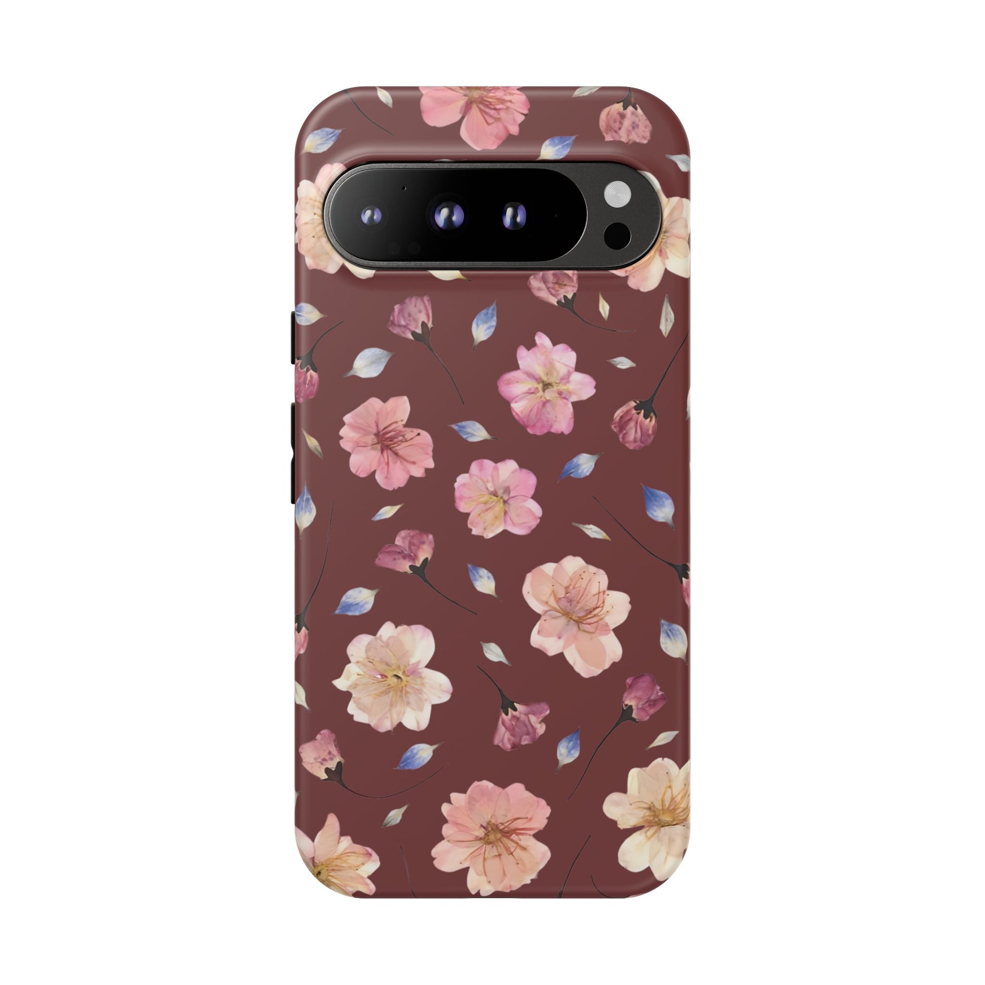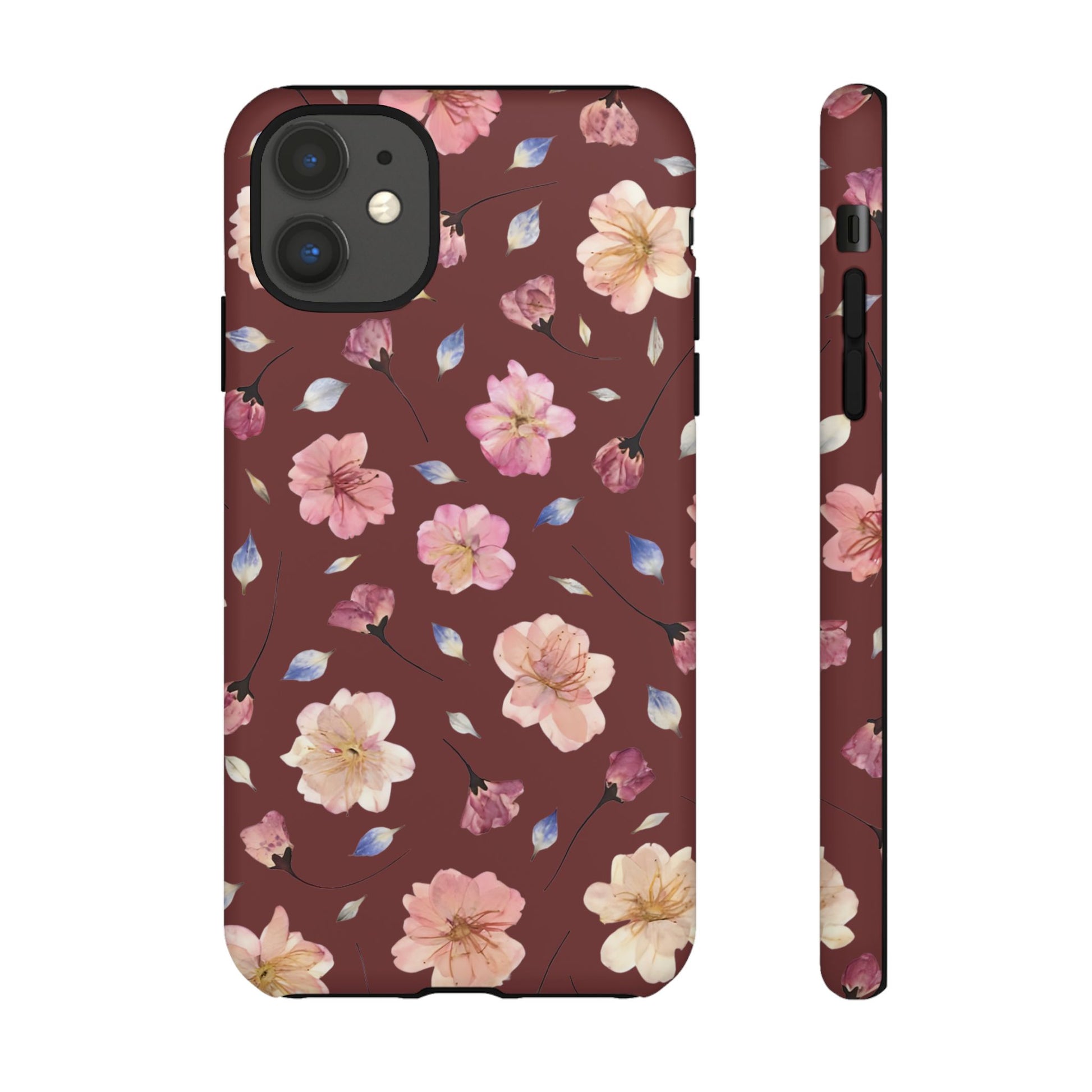 Coque Téléphone Samsung, iPhone & Google Pixel Renforcée Mate – Design Floral Fleurs de Cerisier sur Fond Bordeaux | Protection Antichoc | Idée Cadeau Pour Elle