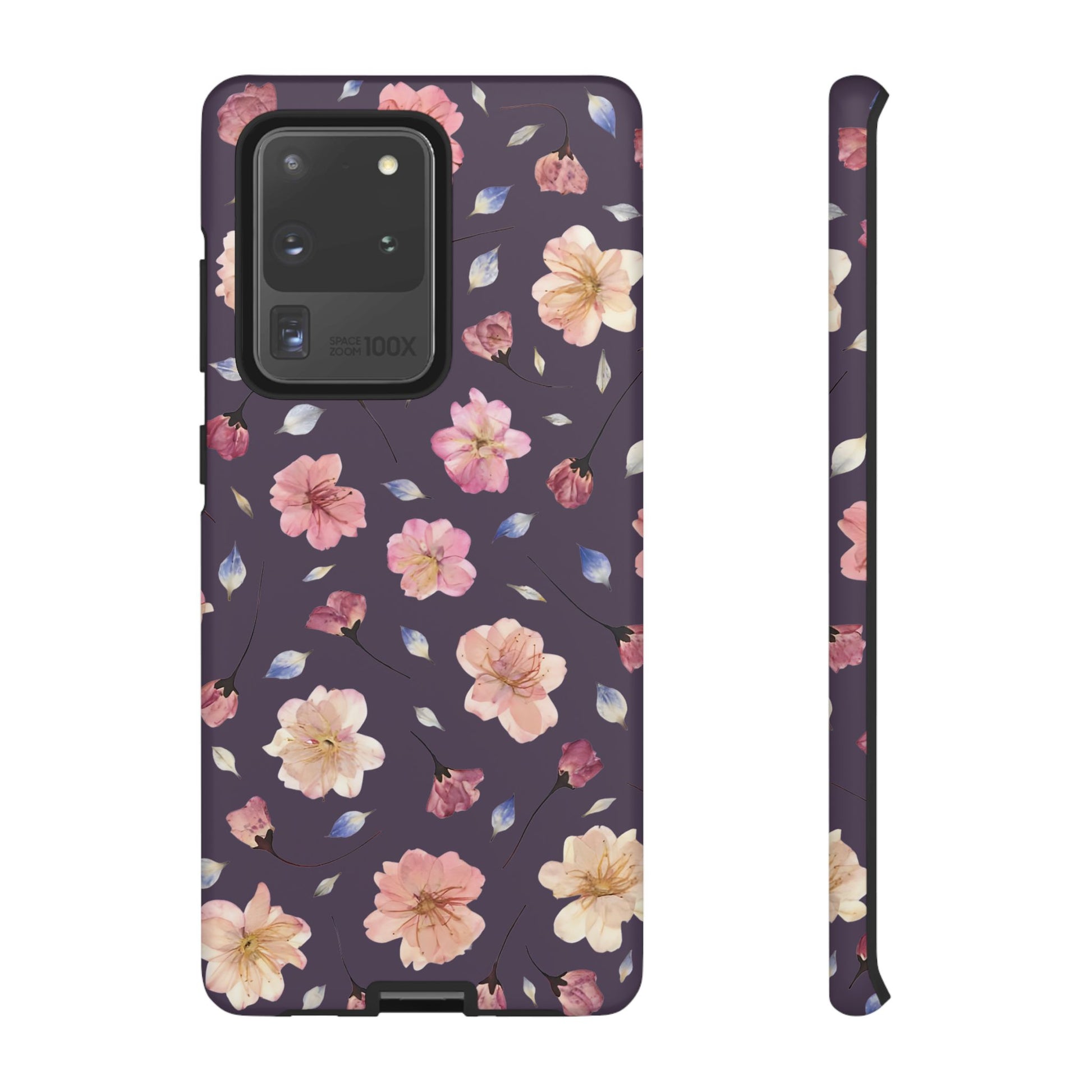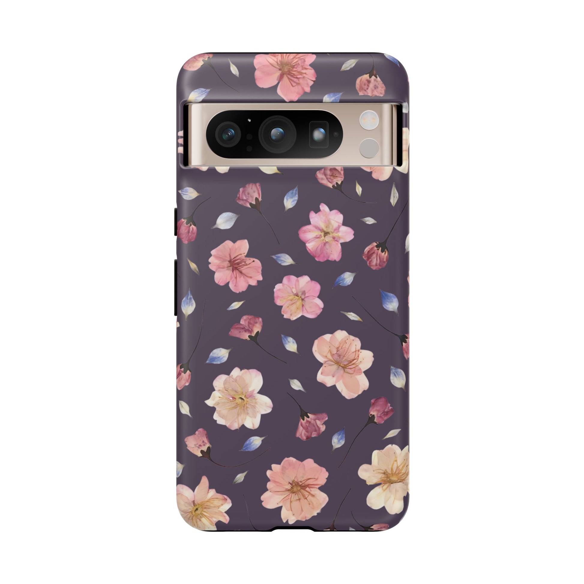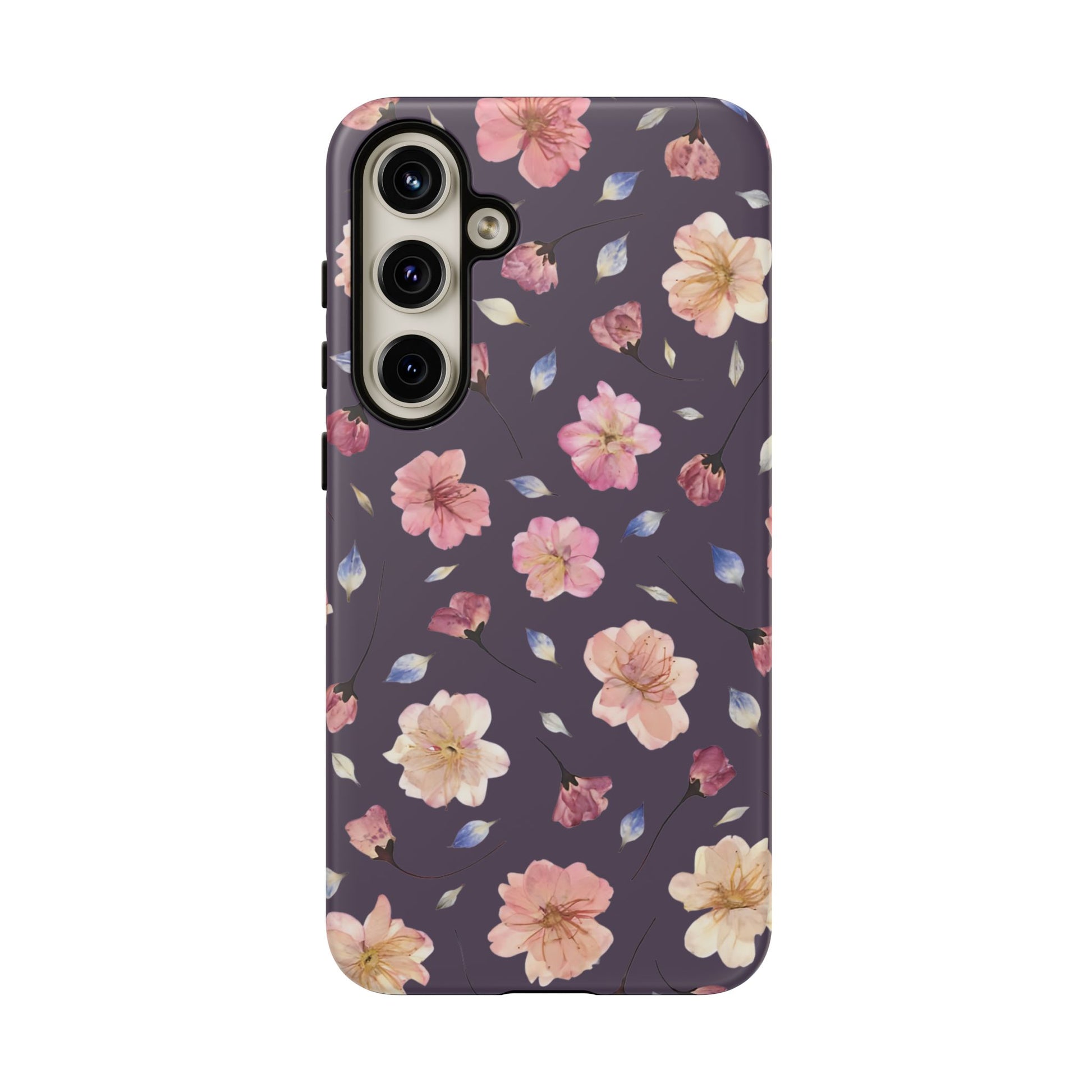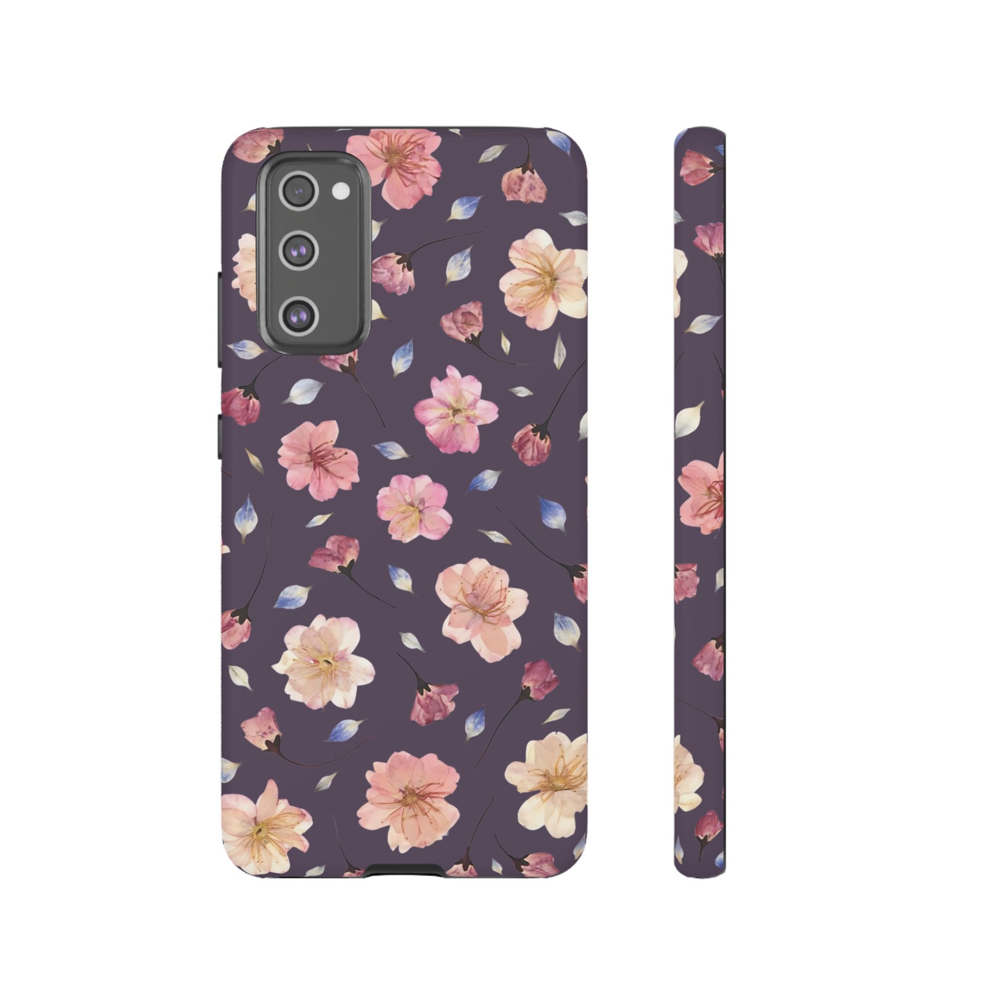 Coque Téléphone Samsung, iPhone & Google Pixel Renforcée Mate – Design Floral Fleurs de Cerisier sur Fond Couleur Prune | Protection Antichoc | Idée Cadeau Femme