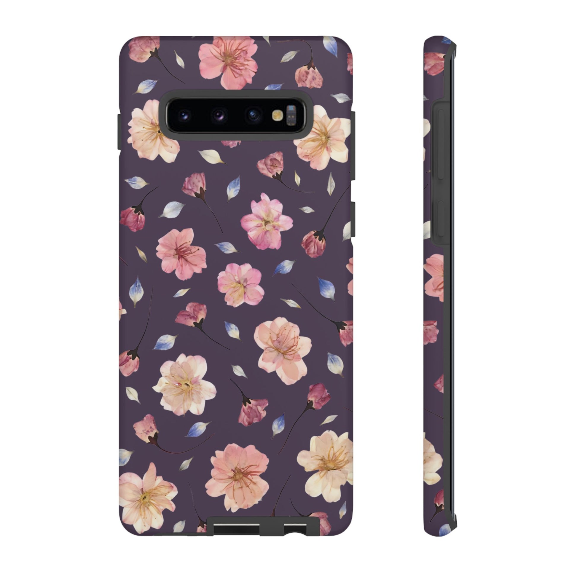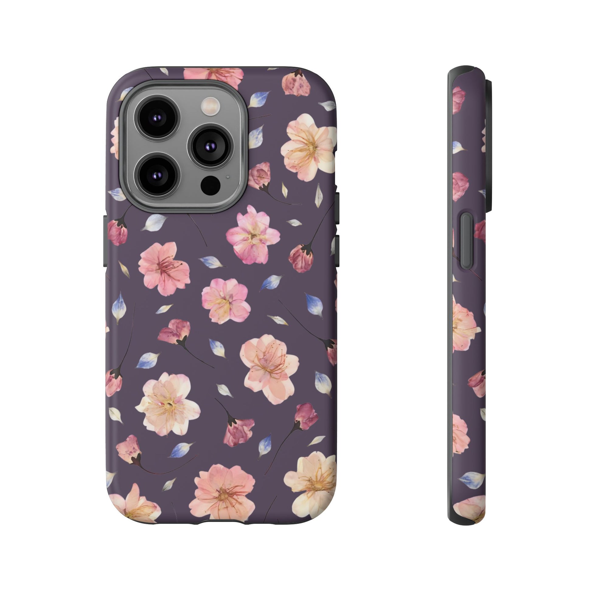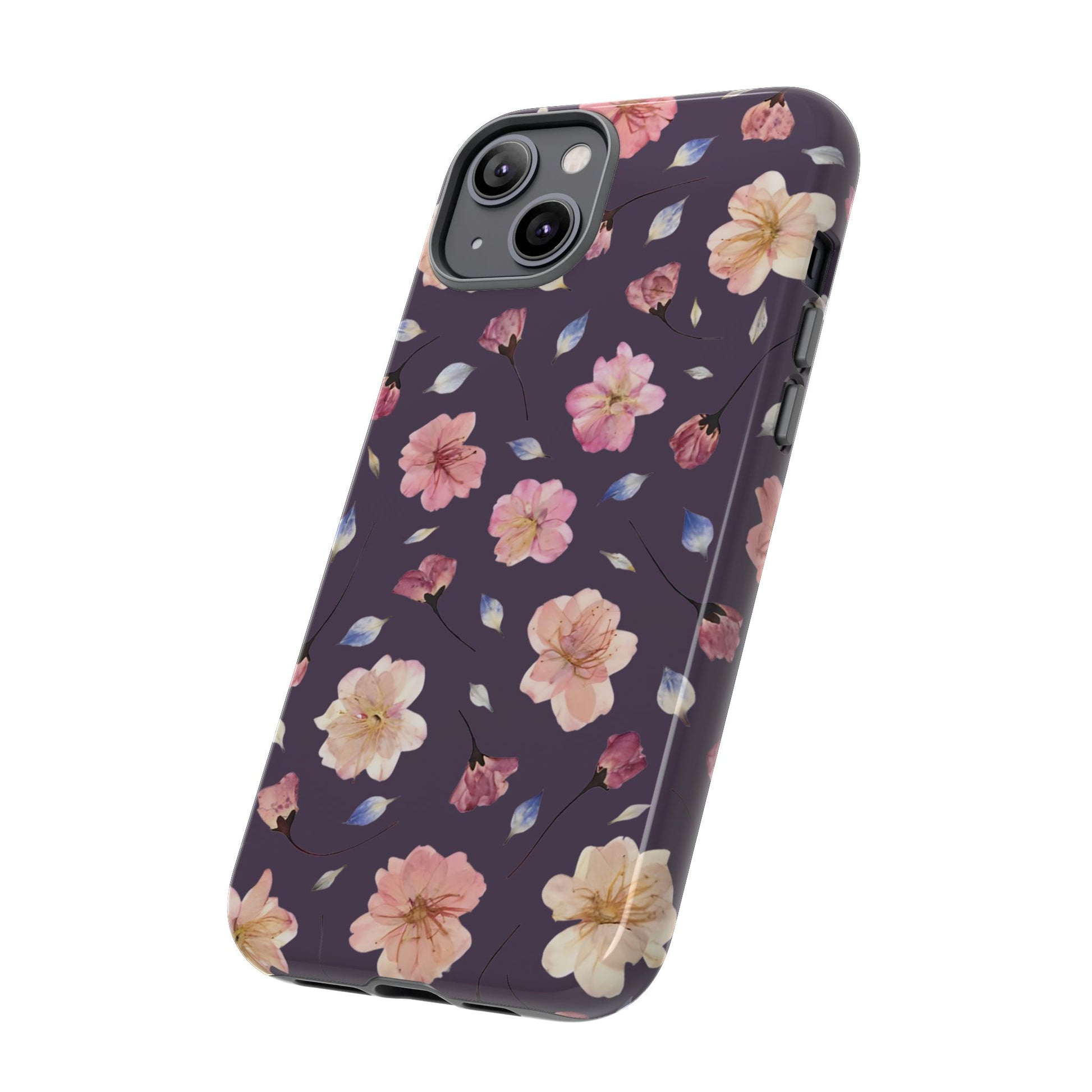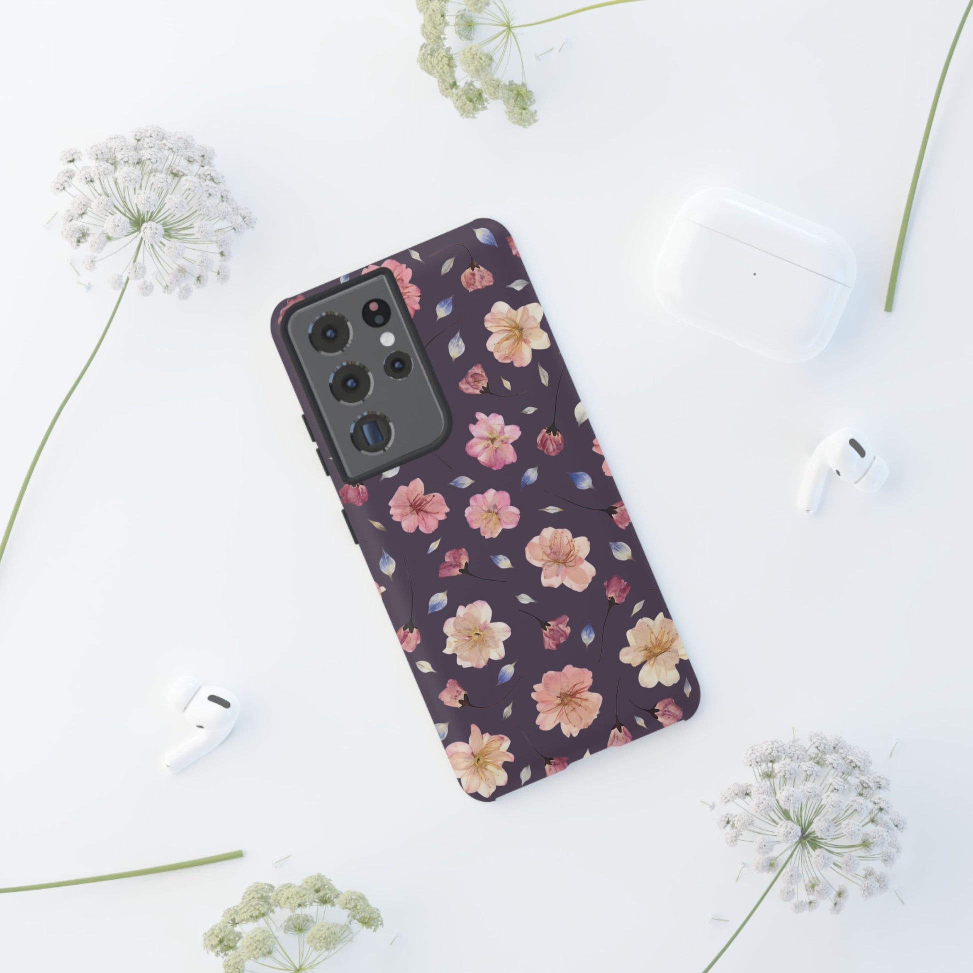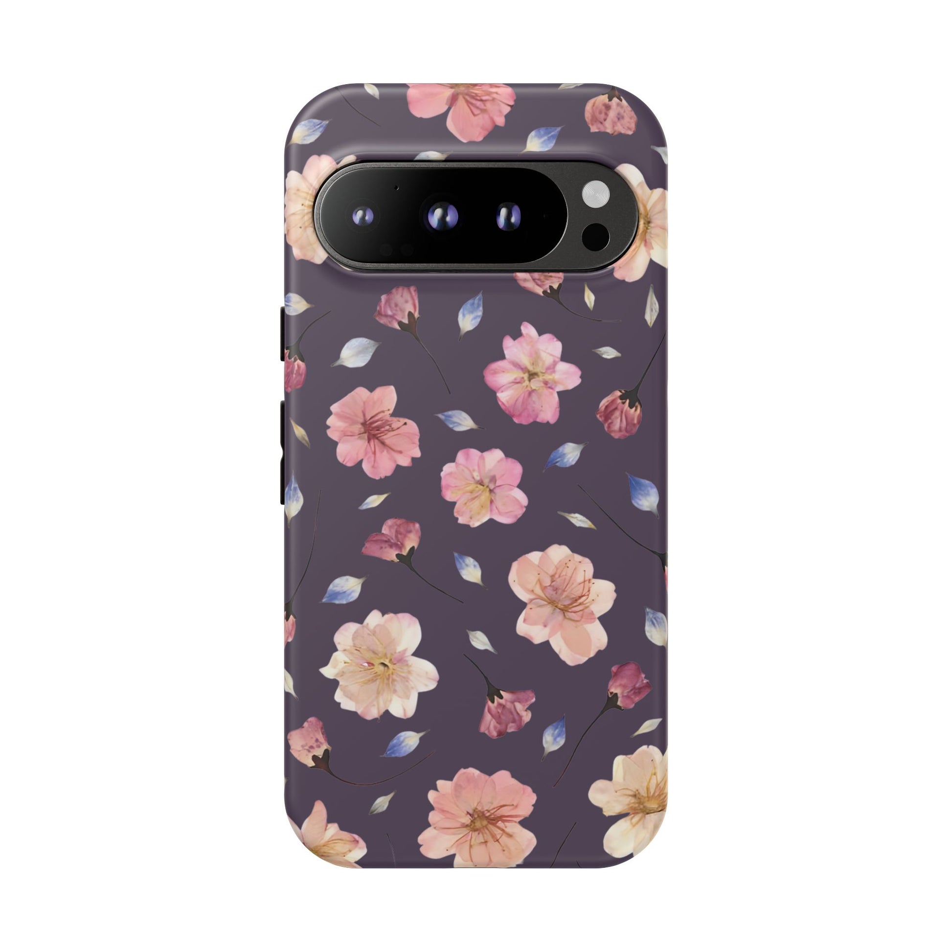 Coque Téléphone Samsung, iPhone & Google Pixel Renforcée Mate – Design Floral Fleurs de Cerisier sur Fond Couleur Prune | Protection Antichoc | Idée Cadeau Femme