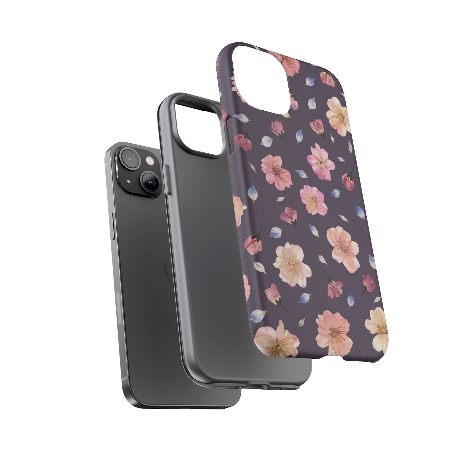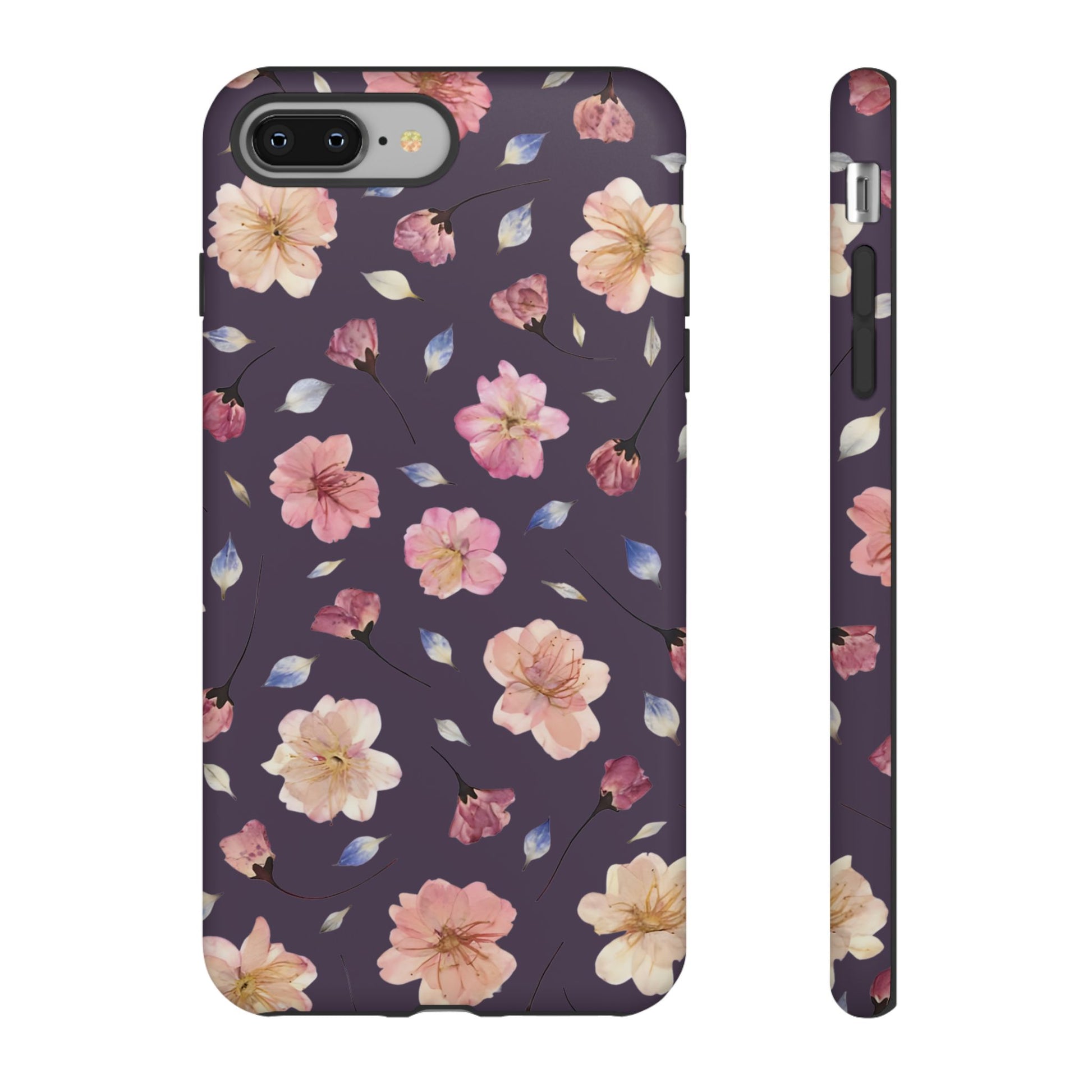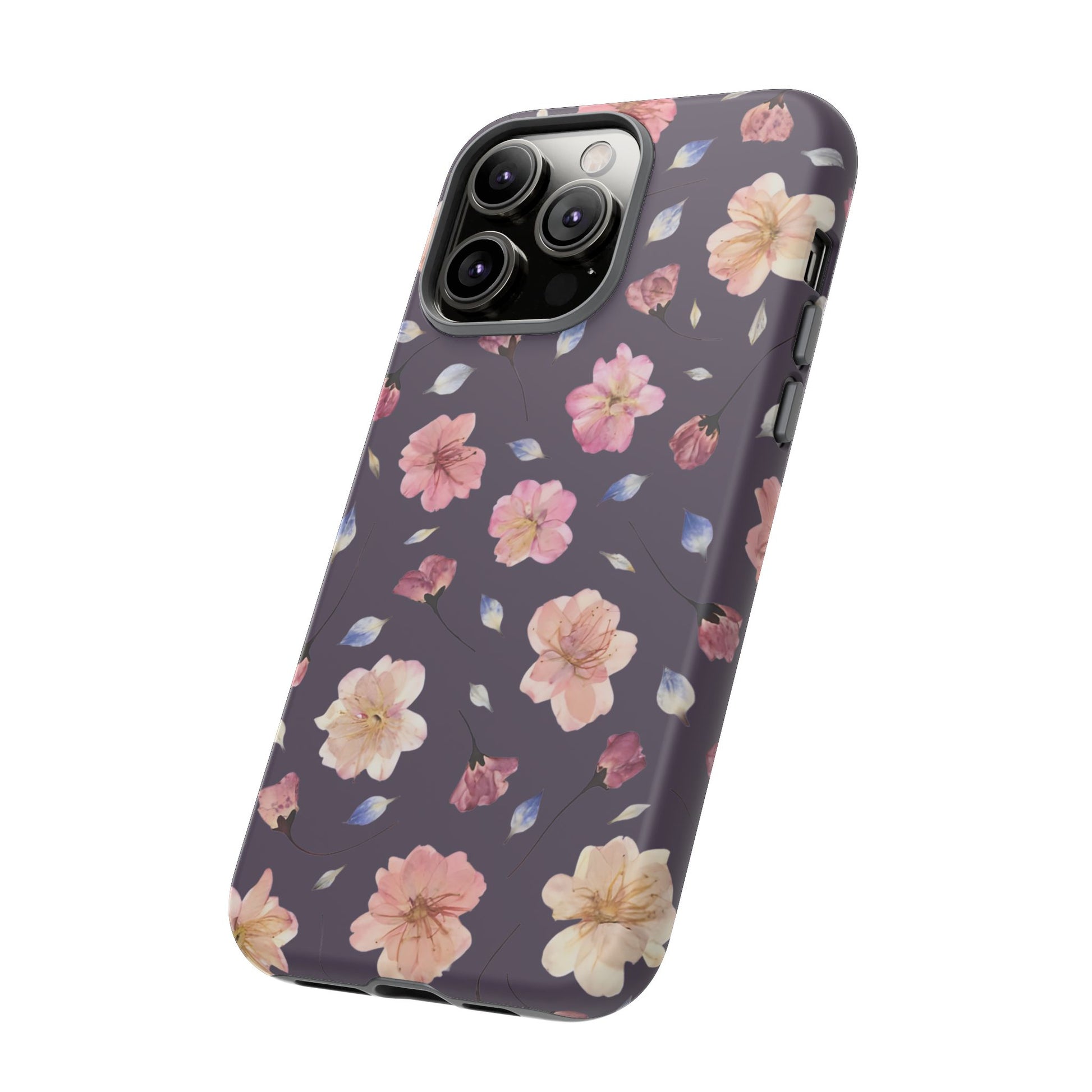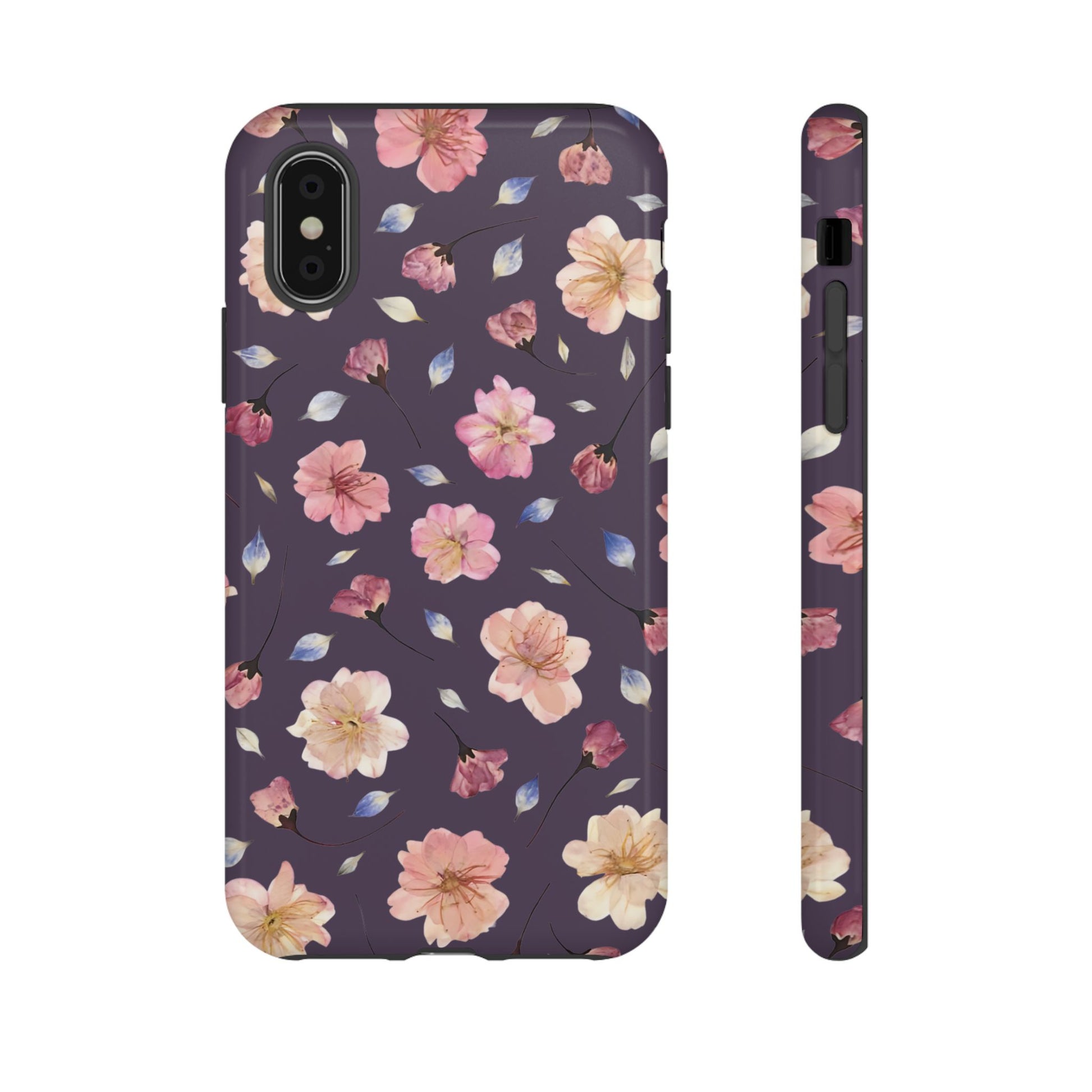 Coque Téléphone Samsung, iPhone & Google Pixel Renforcée Mate – Design Floral Fleurs de Cerisier sur Fond Couleur Prune | Protection Antichoc | Idée Cadeau Femme