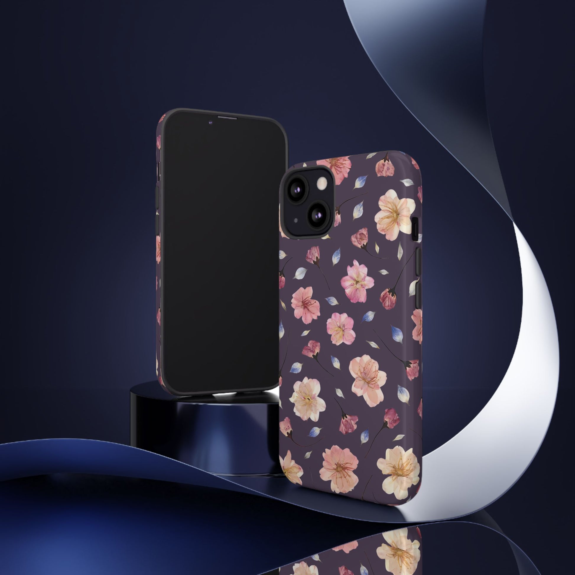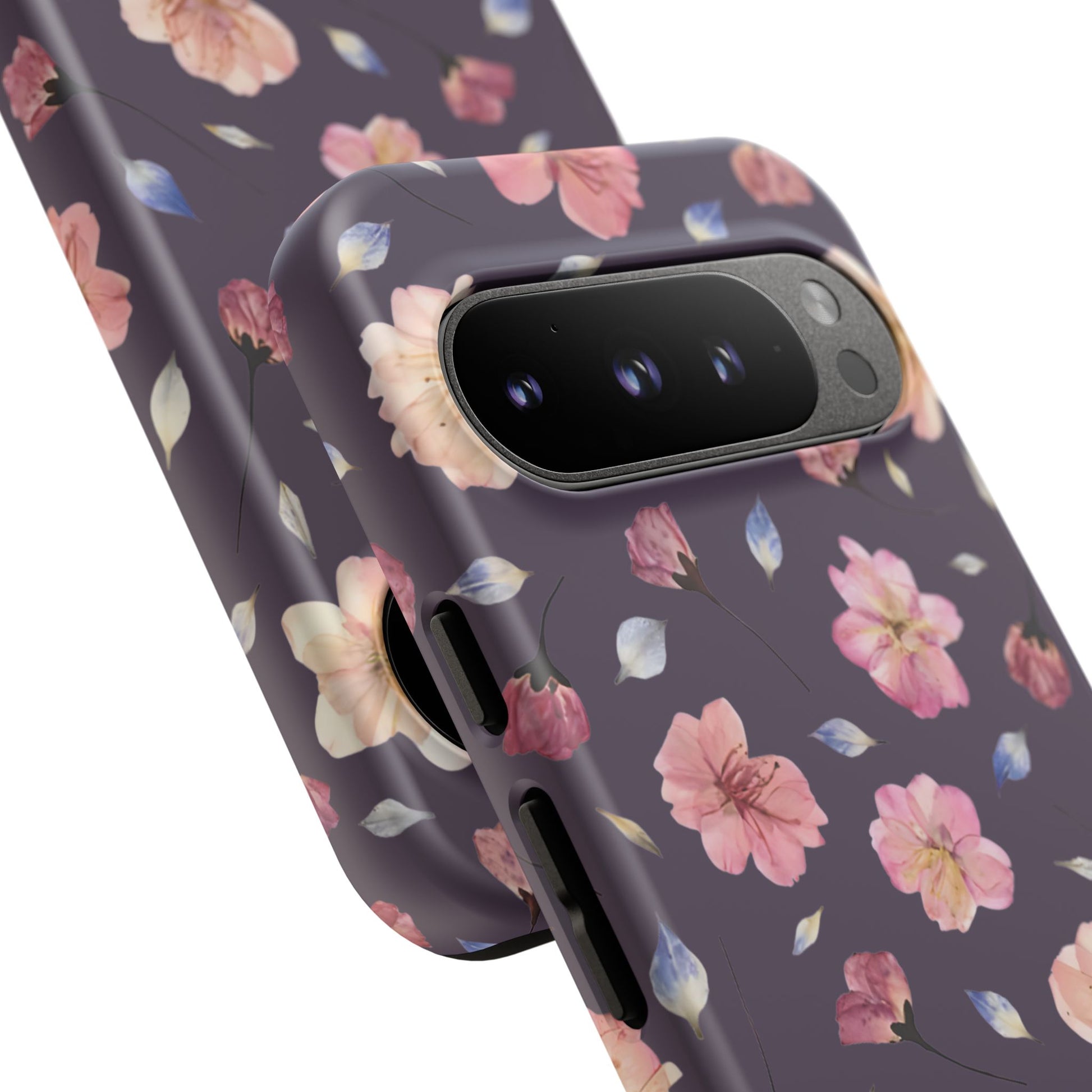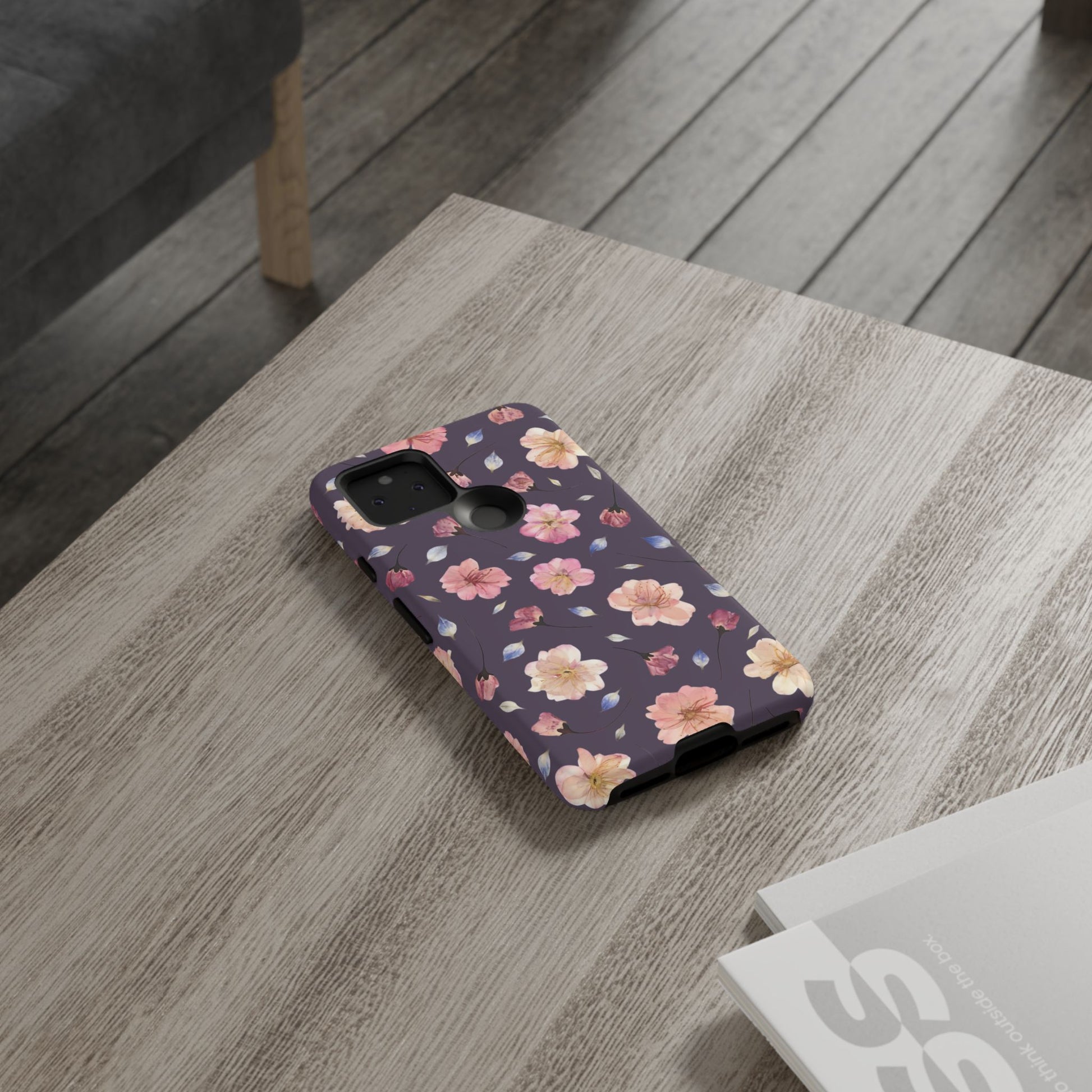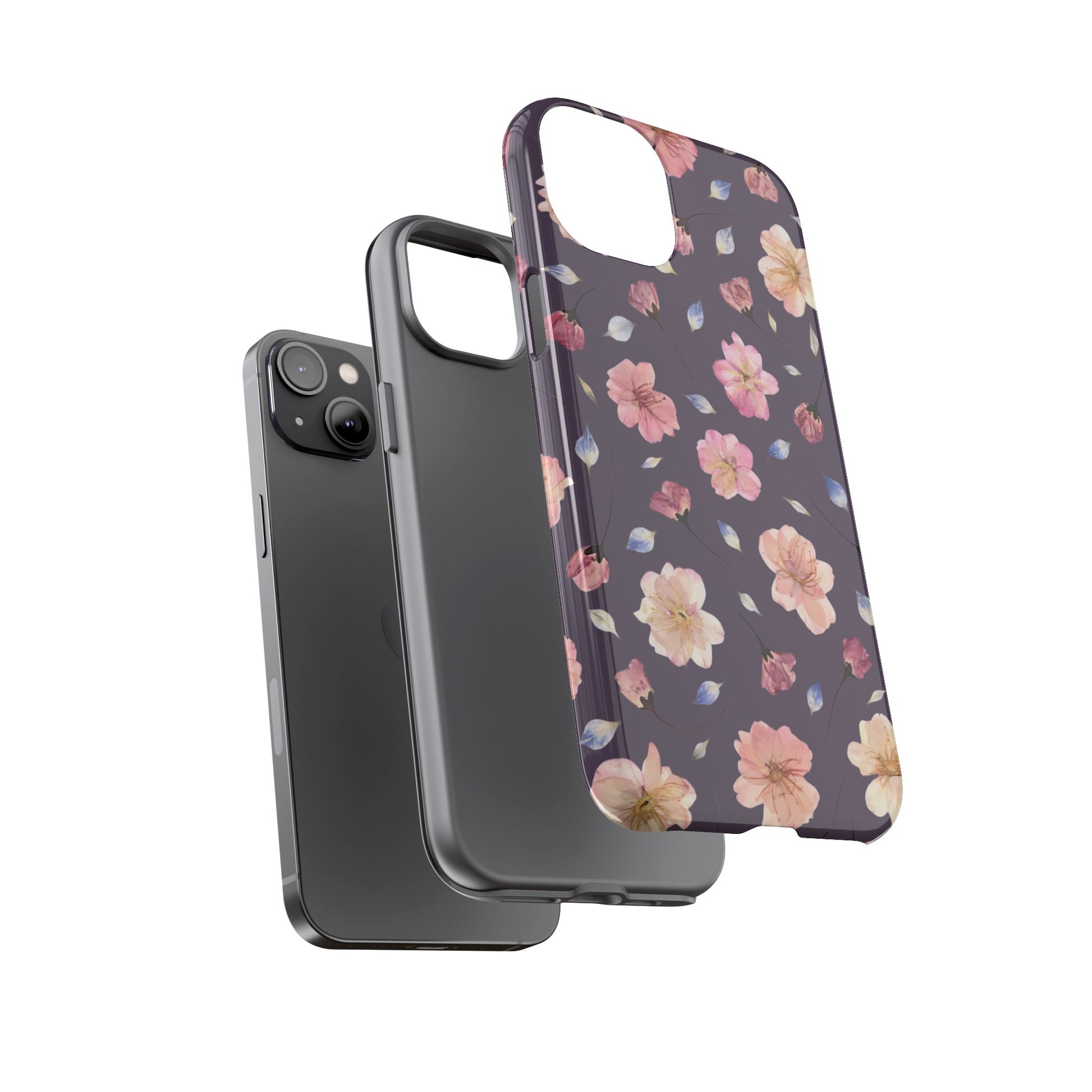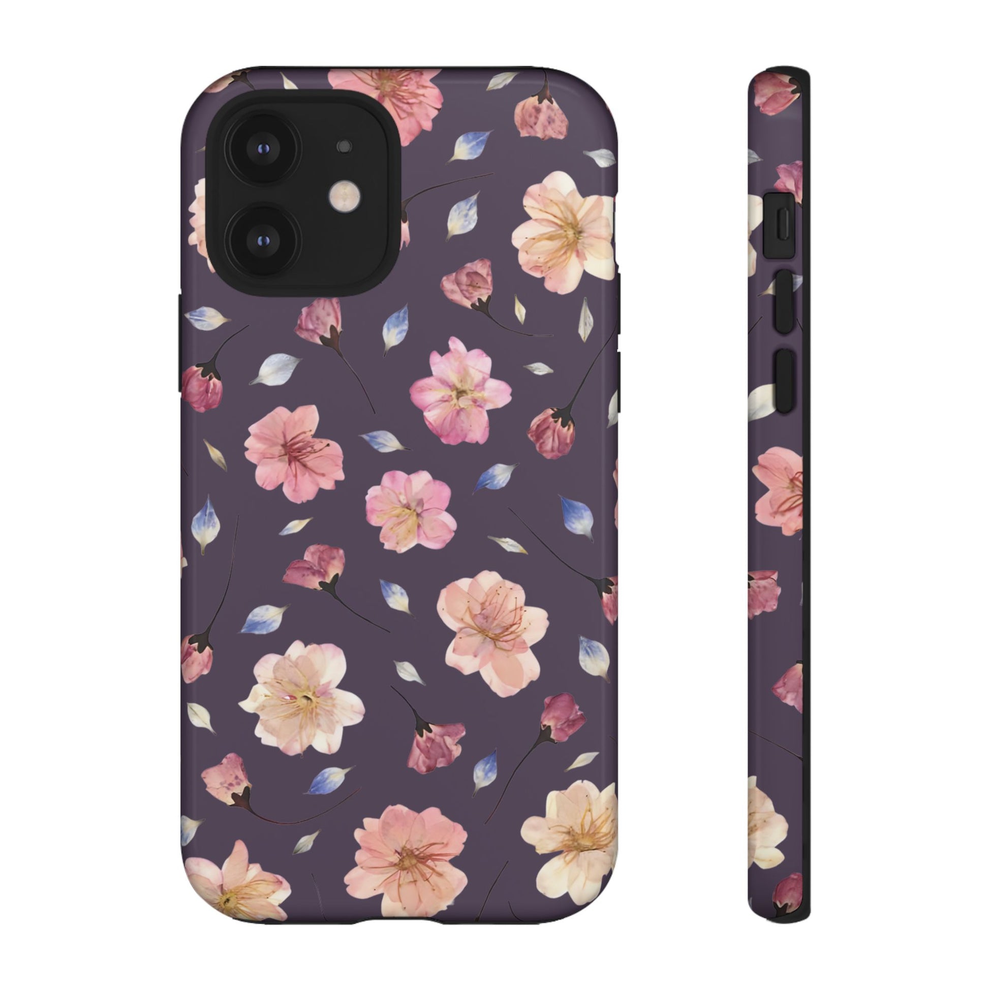 Coque Téléphone Samsung, iPhone & Google Pixel Renforcée Mate – Design Floral Fleurs de Cerisier sur Fond Couleur Prune | Protection Antichoc | Idée Cadeau Femme
