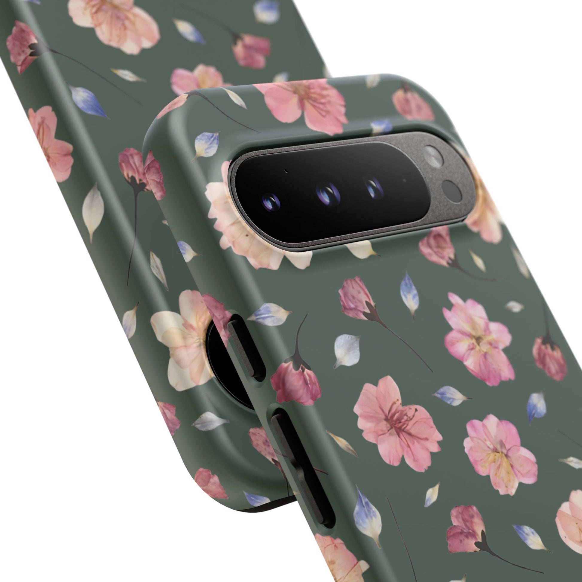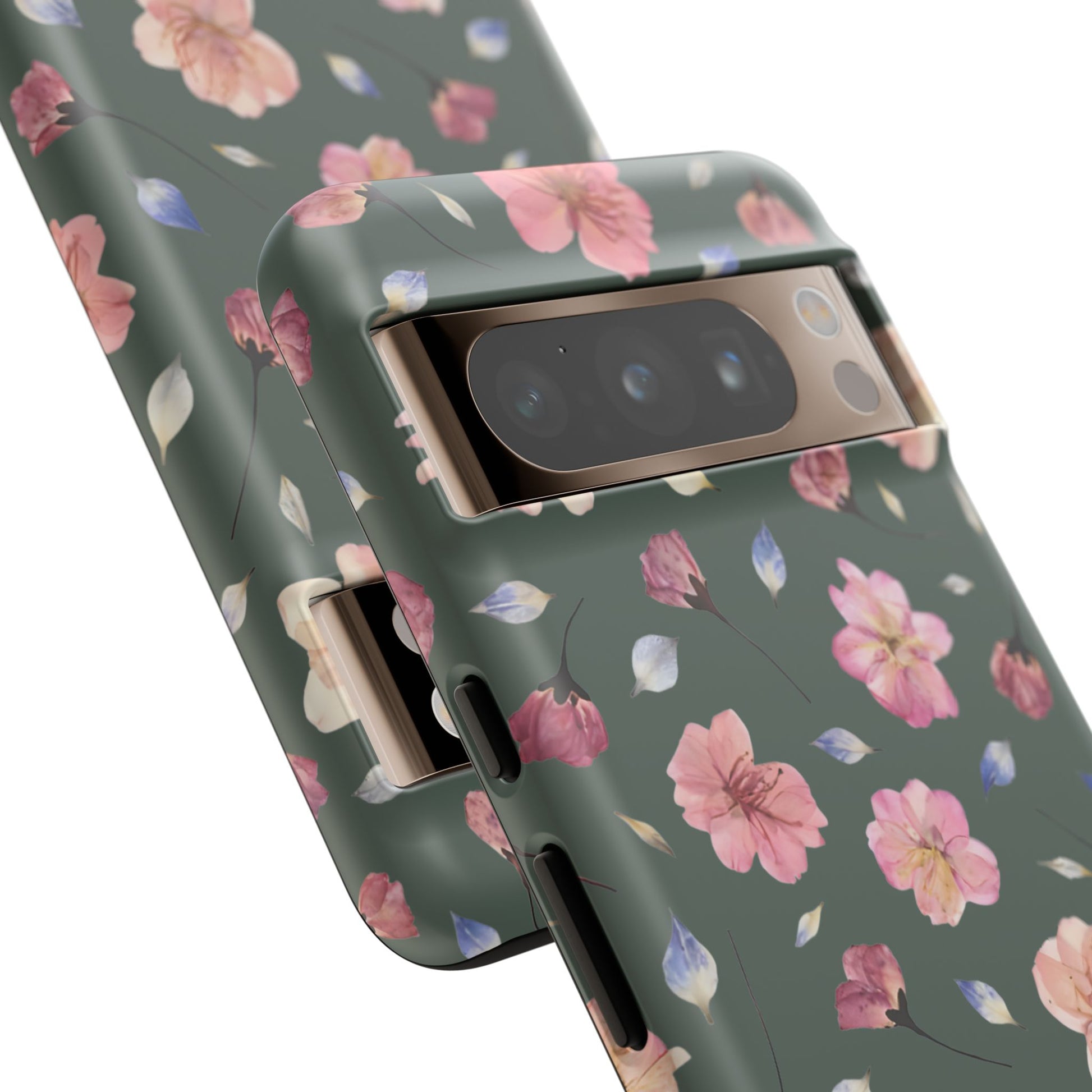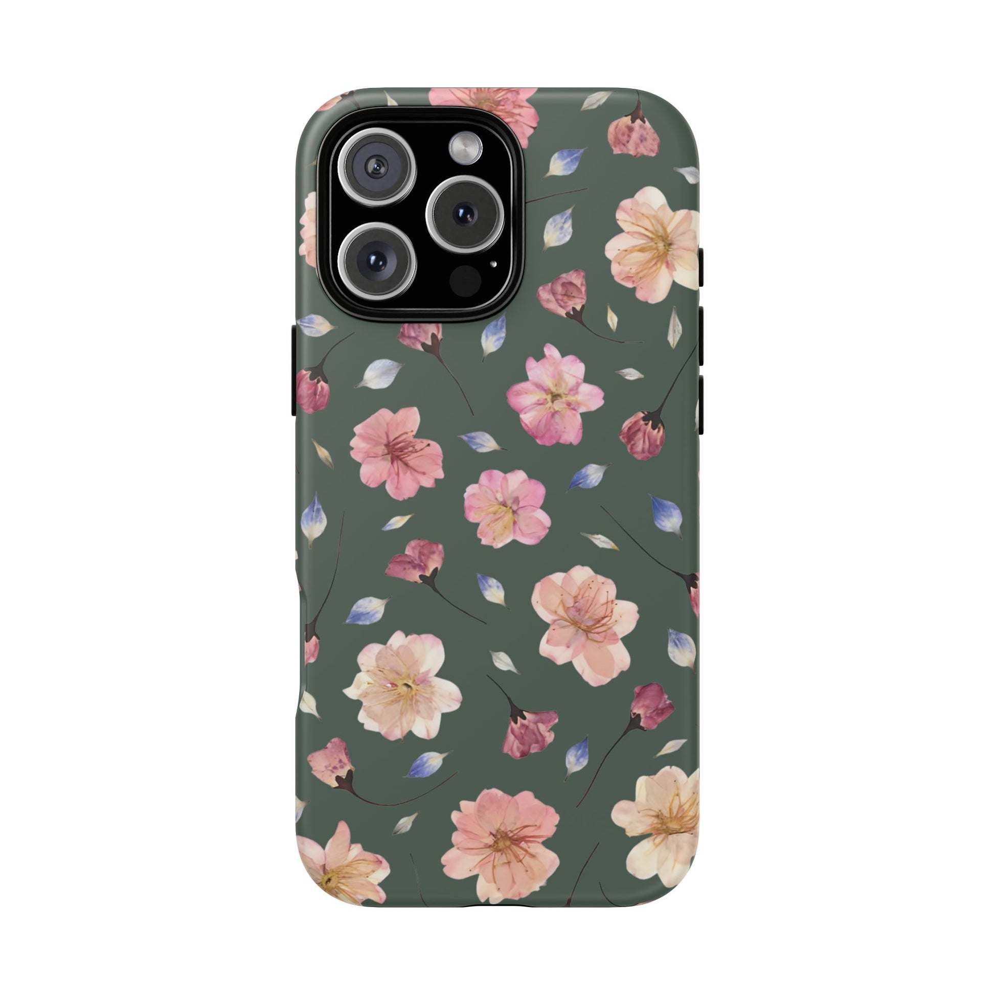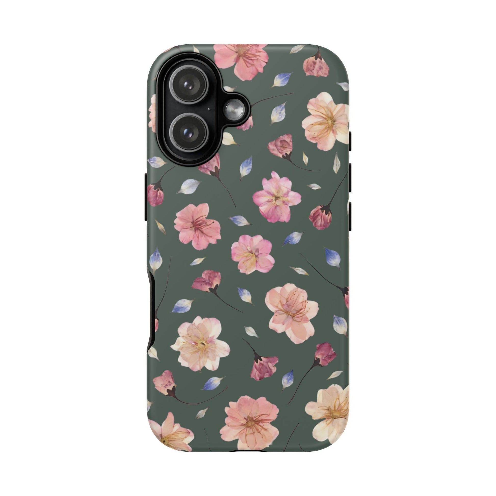Coque Téléphone Samsung, iPhone & Google Pixel Renforcée Mate – Design Floral Fleurs de Cerisier sur Fond Verte Minéral | Protection Antichoc | Idée Cadeau Femme