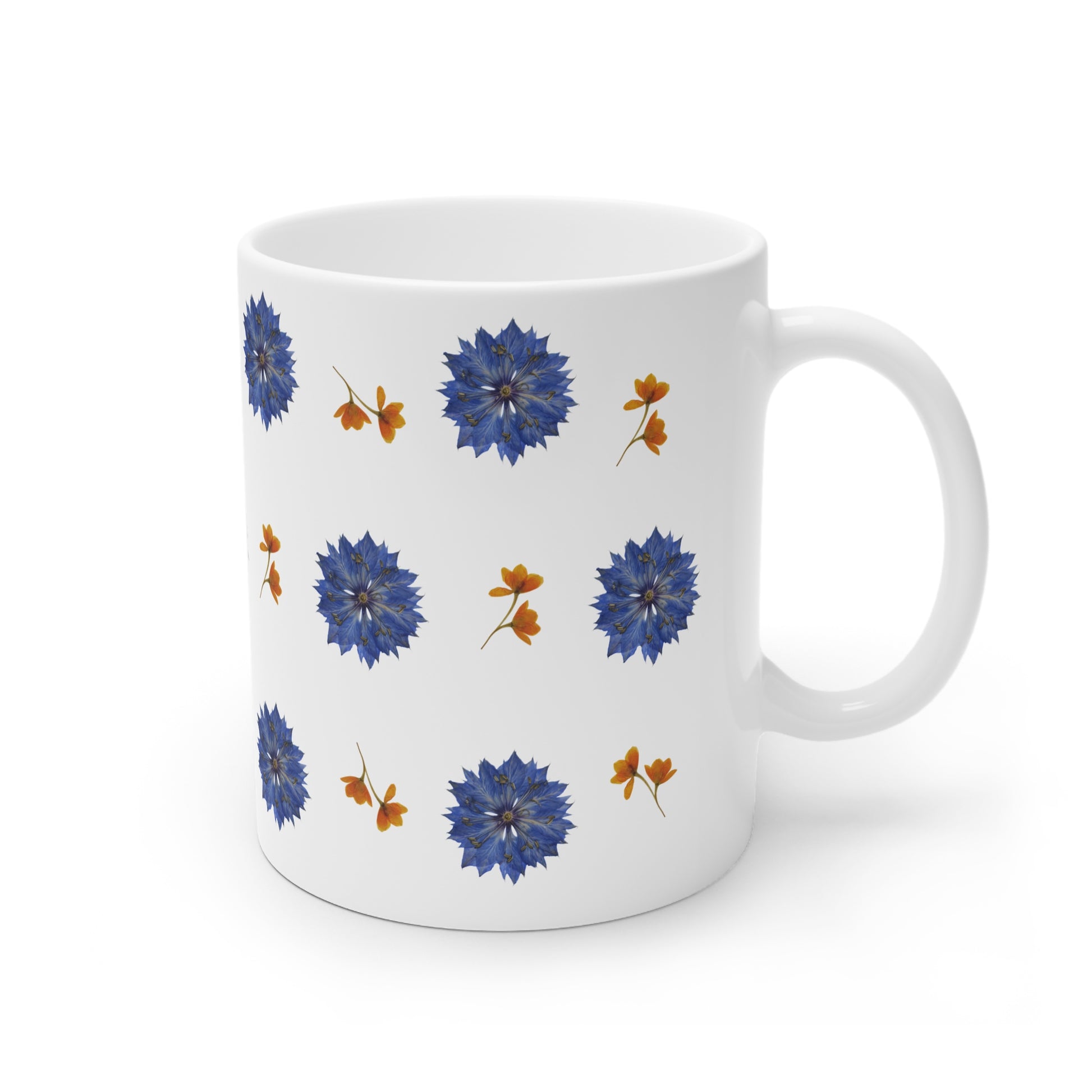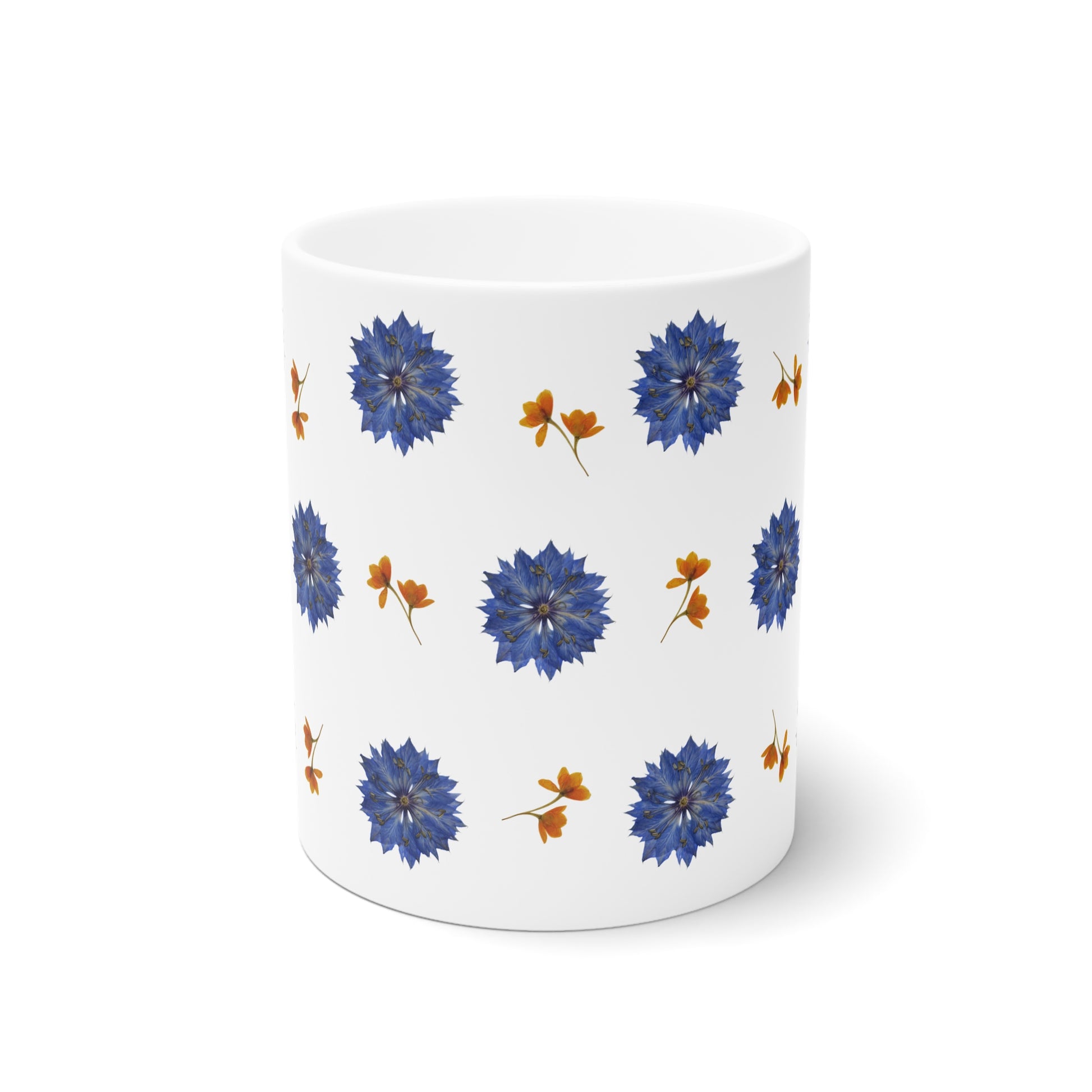 Avec son design floral féminin et épuré, délicatement parsemé de fleurs de Nigeles bleu et d'Ornithogalum orange, cette tasse en céramique blanche évoque la fraîcheur et la légèreté des premiers jours du printemps. Son esthétique aérienne et joyeuse en fait le compagnon parfait pour vos réveils en douceur ou vos pauses thé ensoleillées.