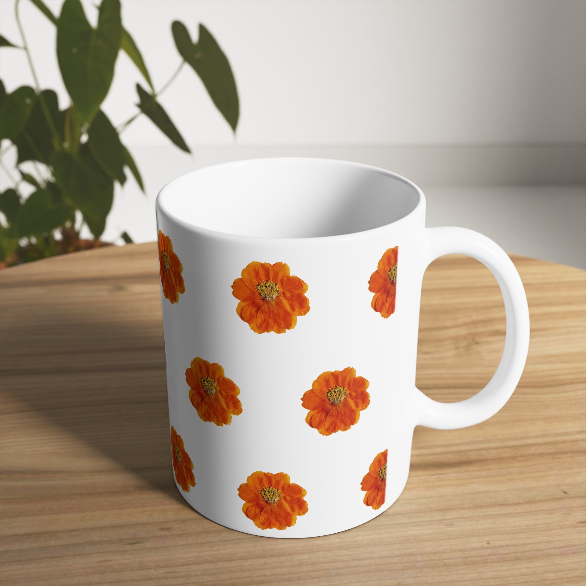 Mug Céramique Florale Cosmos orange | Tasse Design Végétal 325ml – Idée Cadeau Amateurs de Fleurs & Déco Printanière